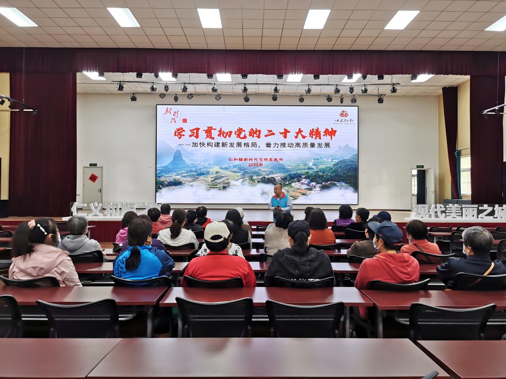 为充分发挥新时代文明实践所宣传阵地作用,仁和镇新时代文明实践所在日常工作中组织镇域居民常态开展以学习贯彻习近平新时代中国特色社会主义思想和党的二十大精神为主题的宣讲活动,大力宣贯党的路线、方针和政策,持续开展党史学习活动,推动实现宣传群众、服务群众、引领群众的工作目标。