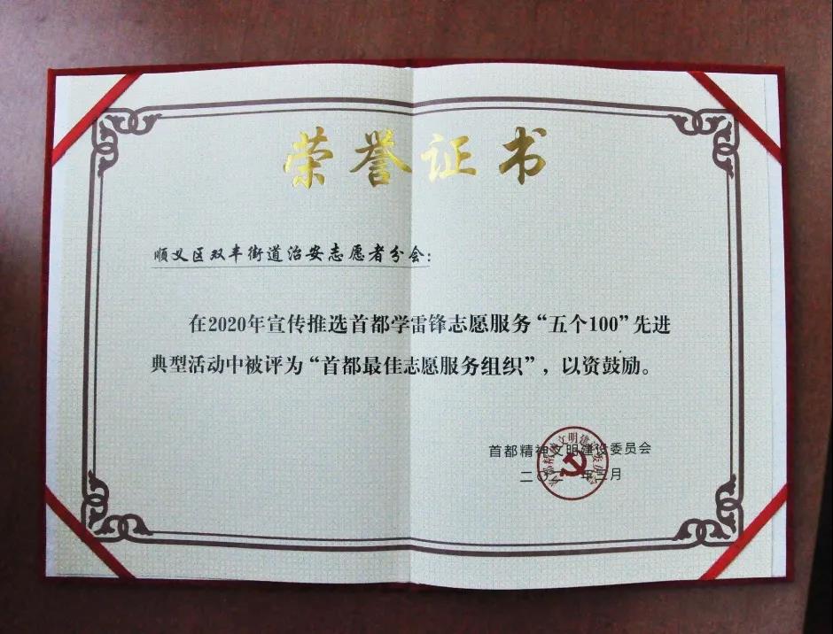 【党建+大公益】喜报!双丰“暖心橙”获评“首都最佳志愿服务组织” 顺义区双丰街道治安志愿者分会