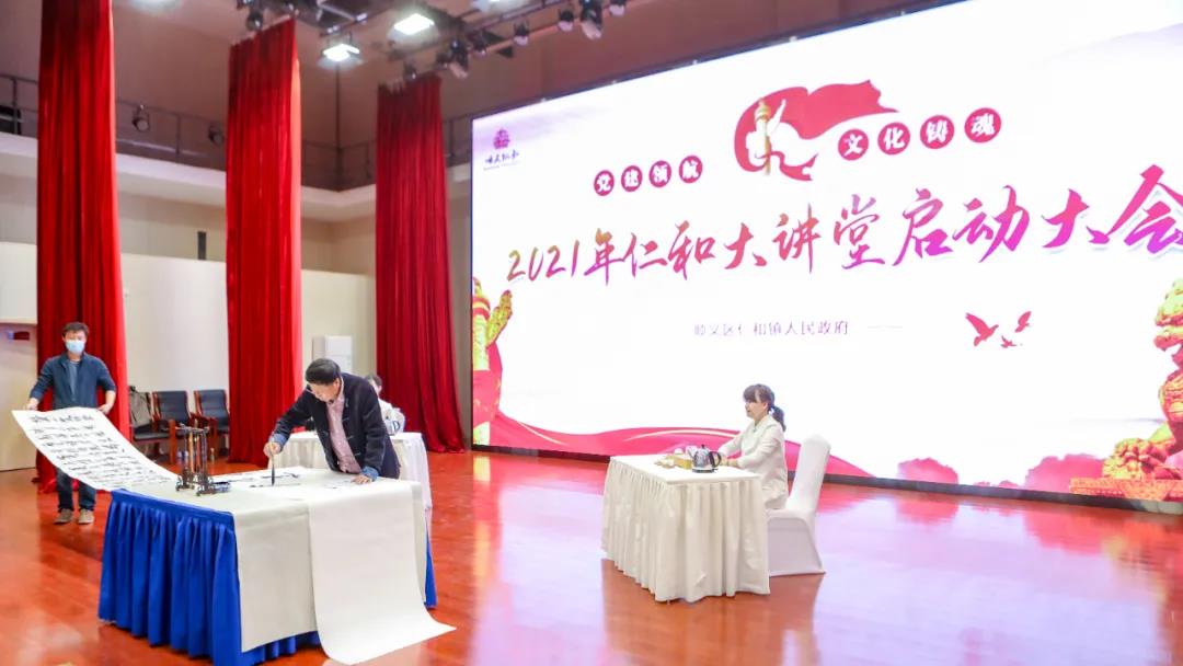 在大家的共同见证下,到场领导们一同推动书卷,2021年仁和大讲堂正式启动。