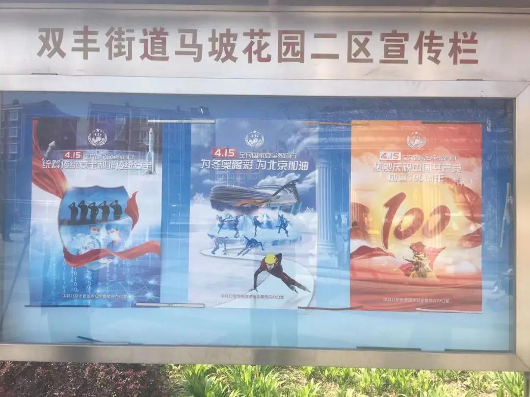 在社区、学校及商场超市等人员密集场所的醒目位置,张贴“国家安全法”、“践行总体国家安全观”、“统筹发展和安全”、“统筹传统安全和非传统安全”、“为冬奥喝彩”和“庆祝中国共产党成立100周年”等围绕国家安全教育日主题的宣传海报150余张。
