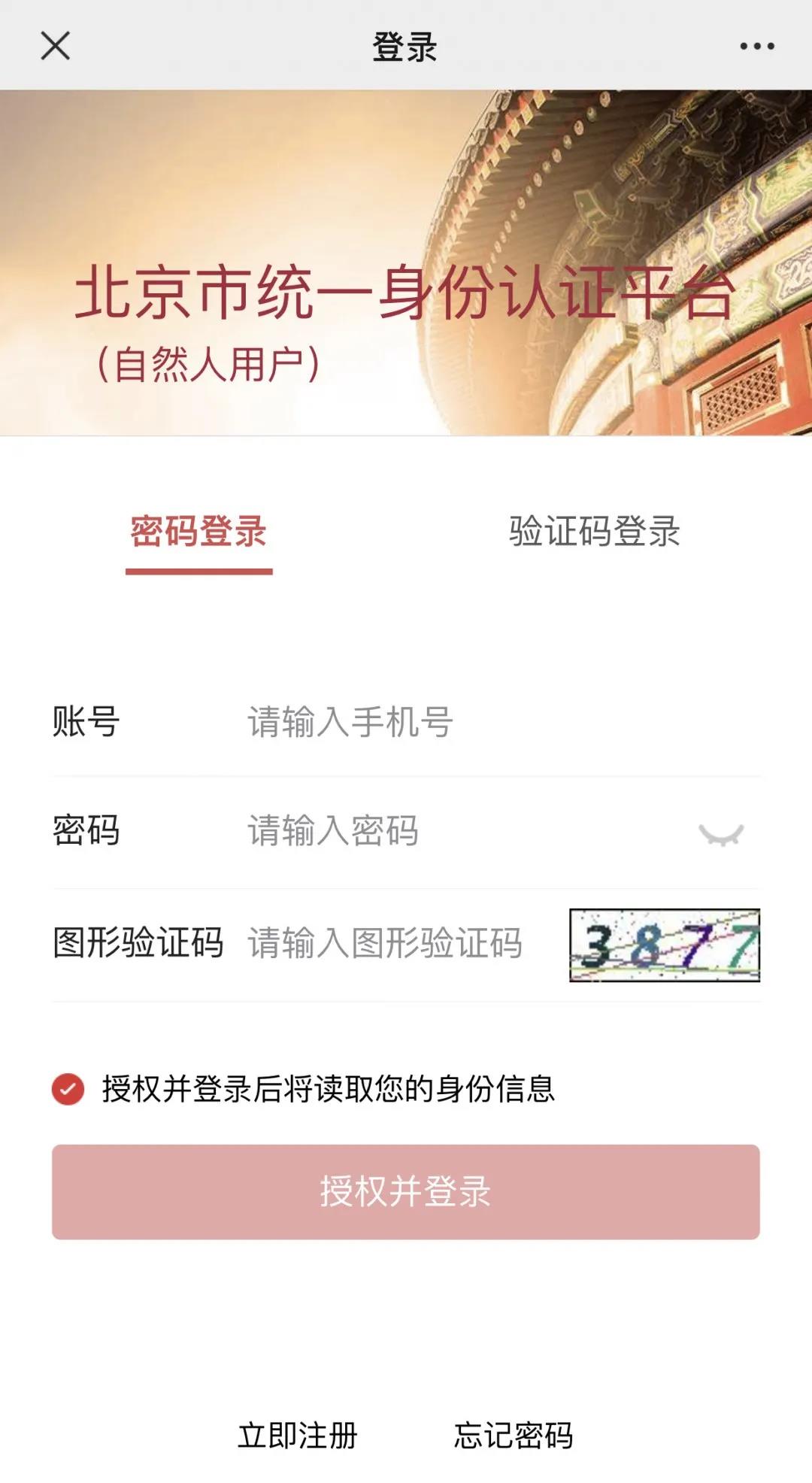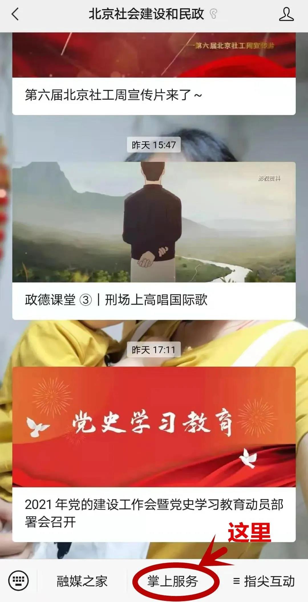 1.关注“北京社会建设和民政”微信公众号,点击“掌上服务”,点击“殡葬服务预约”,进入“北京统一身份认证平台”。