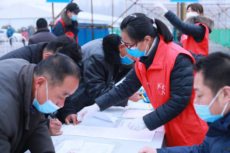 “下了夜班我就赶过来了,从小老师就教我们‘学习雷锋好榜样’,借着这次机会能燃烧我的热量为疫情防控做贡献,我觉着非常有意义,不能错过。”志愿者小孙说。同样参与活动的还有志愿者邵姐,邵姐是志愿服务队的“老队员”了,几乎每场活动都有她的身影,邵姐说:“我想参加志愿活动,能帮助到别人心里特别满足,自己都感觉自己有价值。”天气虽然寒冷,但是志愿者们的内心热血沸腾。