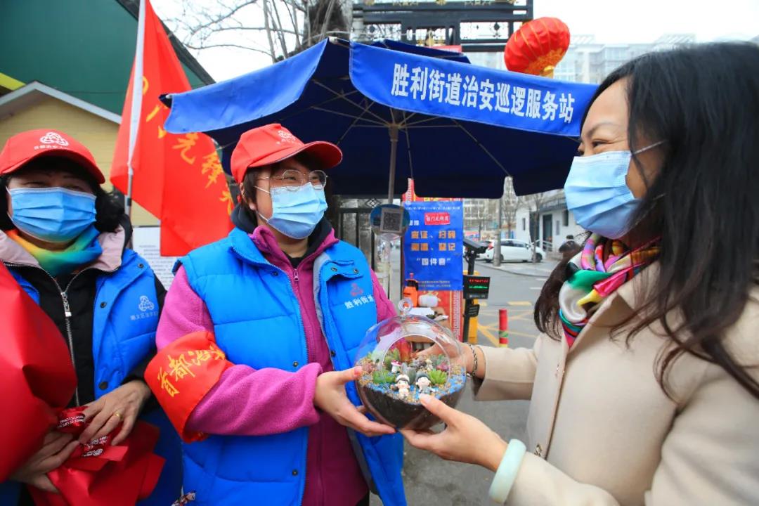 活动结束后,社区党总支书记顾涛还将鲜花和制作好的微景观绿植送给正在岗位上值守的社区女志愿者手中,为她们送上“三八妇女节”的祝福。据悉,胜利街道双兴南,建北二等其他社区的三八节庆祝活动也将于近日陆续开展!
