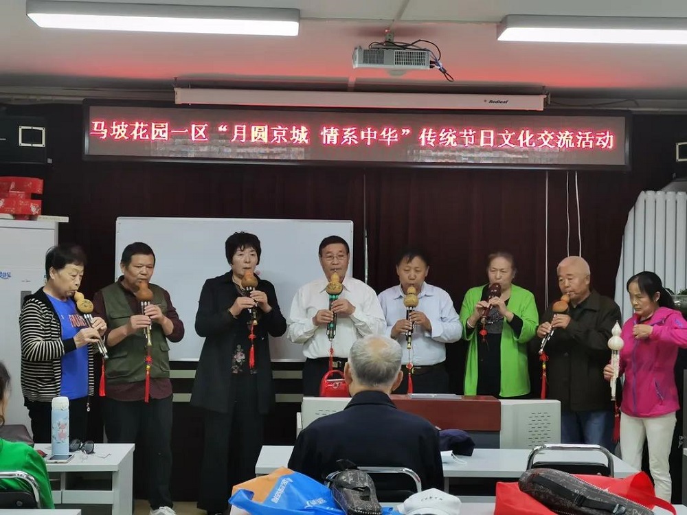 为传承和弘扬中华传统文化,促进社区居民之间的相互融合,9月30日上午9:00,马坡花园第一社区居委会开展了以“月圆京城 情系中华”为主题的文化交流活动,社区居民通过诗歌诵读、葫芦丝演奏、古灯DIY等不同的方式迎接“双节”到来。