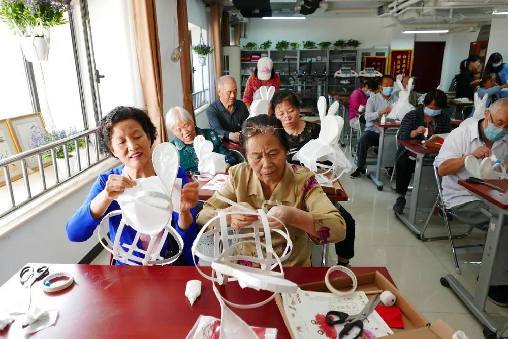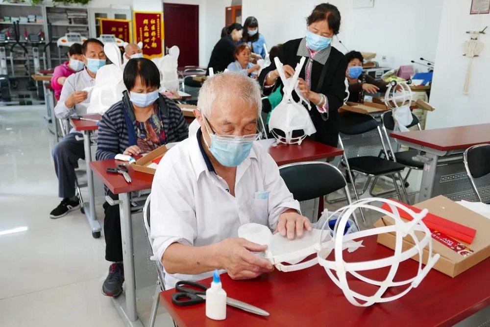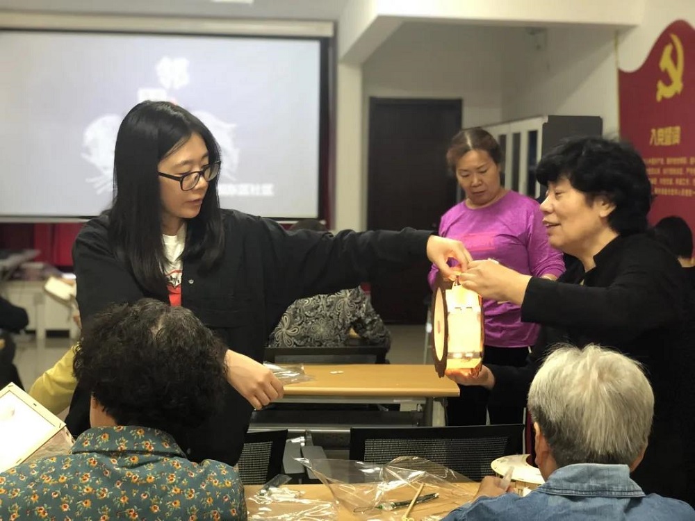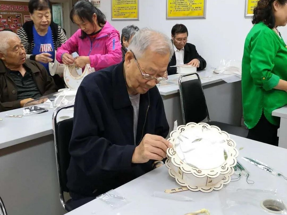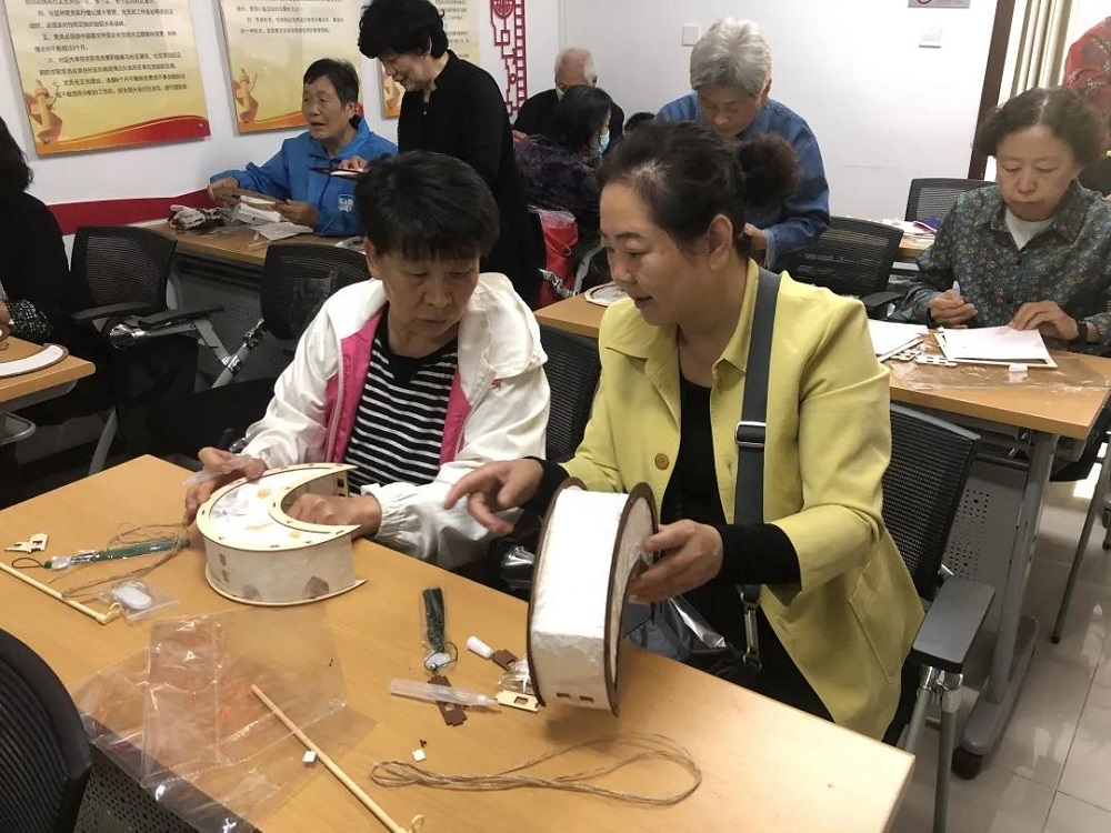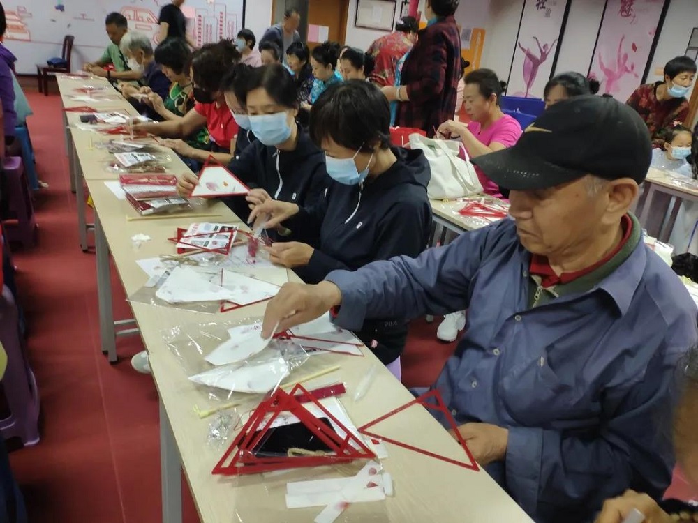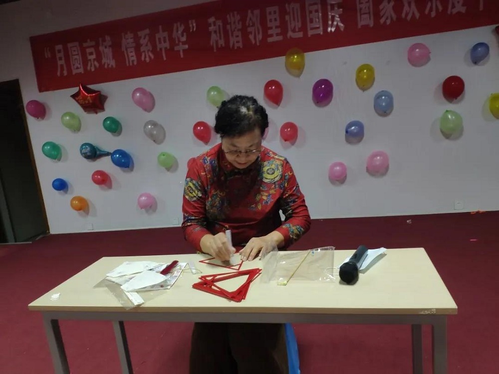 热爱葫芦丝演奏的多位居民则通过共同演奏红歌《北京的金山上》向祖国献礼。节目之后,每一位活动参与者都兴趣盎然地动手制作古风花草古灯,粘、拼、插、缠多个环节之后,形色各异的古灯在每位居民的手中熠熠闪亮,美好欢乐的氛围让人不禁期待燃灯助月色的中秋夜快点到来。