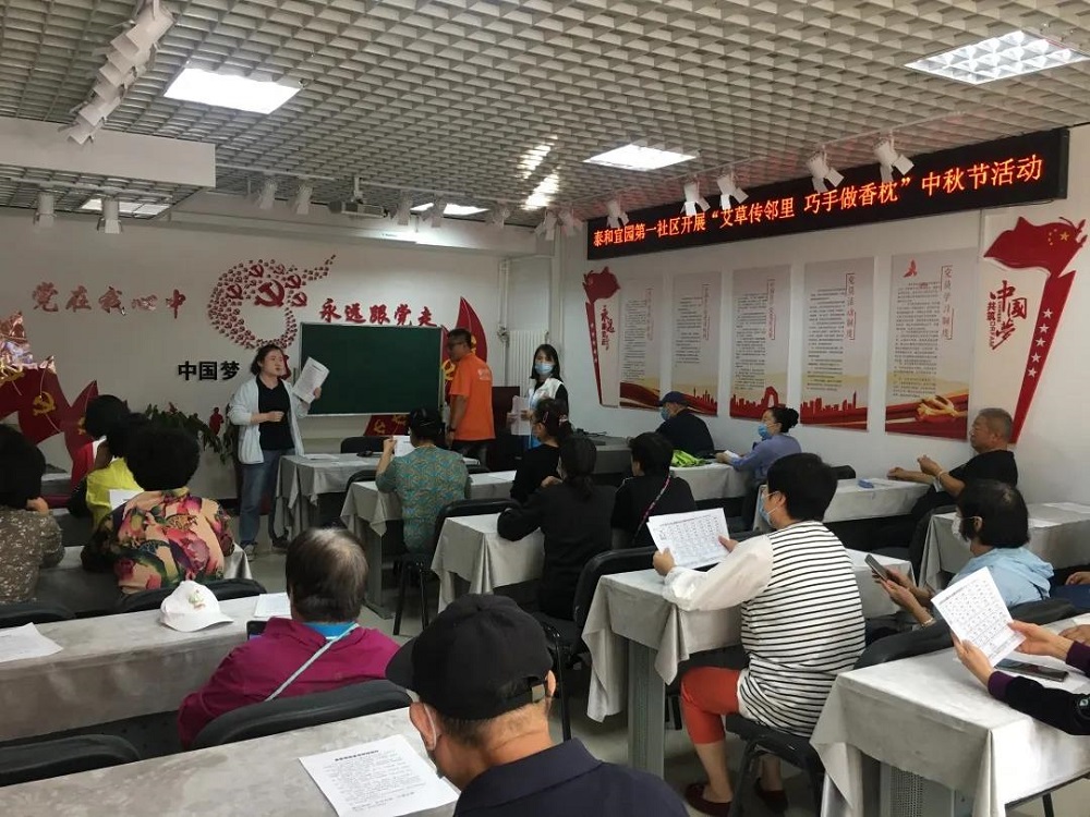 为进一步弘扬中华文化,丰富社区居民精神生活,传播中秋节传统文化,促进社区居民之间的邻里情。泰和宜园第一社区开展“艾香传邻里 巧手做香枕”中秋节活动。