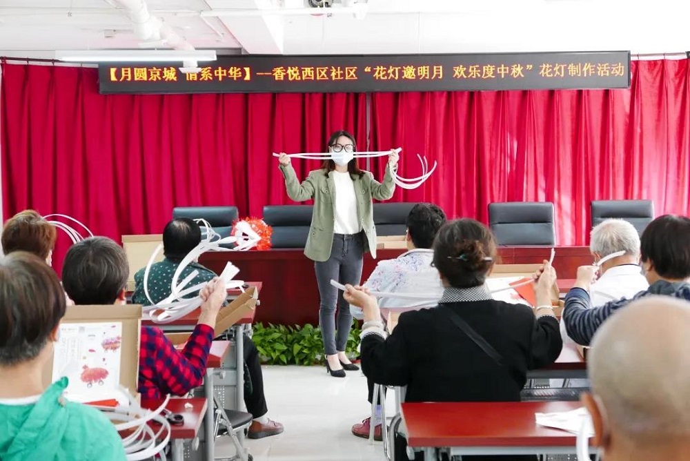 9月29日下午,香悦西区社区开展“花灯邀明月 欢乐度中秋”花灯制作活动,50余位社区居民欢聚在一起共度美好时光。