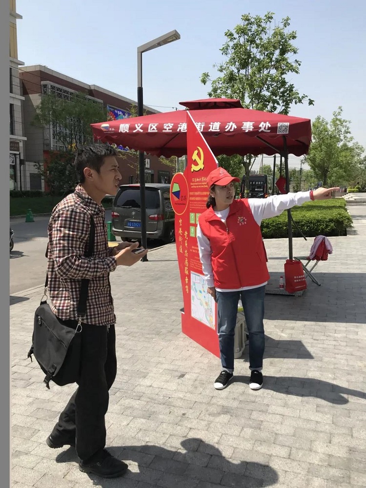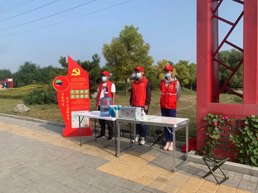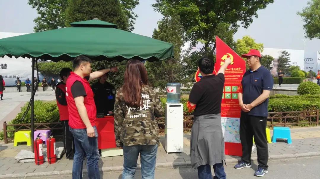 临时党支部在辖区重要场所、馆内馆外人流密集处设立54个党员志愿服务站,社区老党员、报到党员和辖区流动党员纷纷加入志愿服务岗,党员志愿者以实际行动践行“不忘初心、牢记使命”的承诺,为市民游客提供手机充电、临时休息、急救药品、免费饮水等服务。