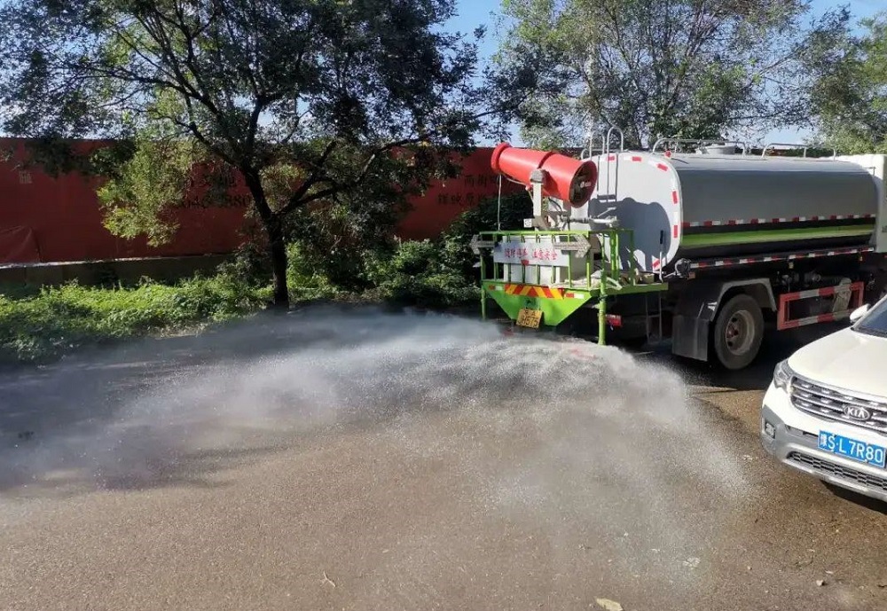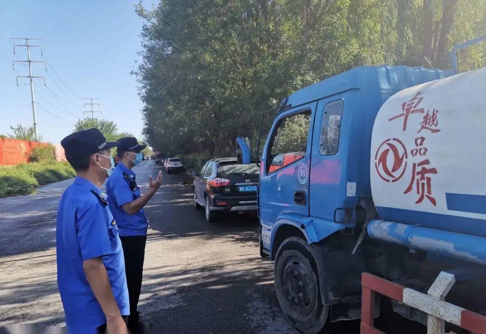 你看,这是街道工作人员,他正在与司机沟通洒水相关工作。为维护城市市容环境,工作人员对辖区施工工地周边道路和其他主要道路实施洒水,正是这一举措,辖区道路的“颜值”都提升了不少。