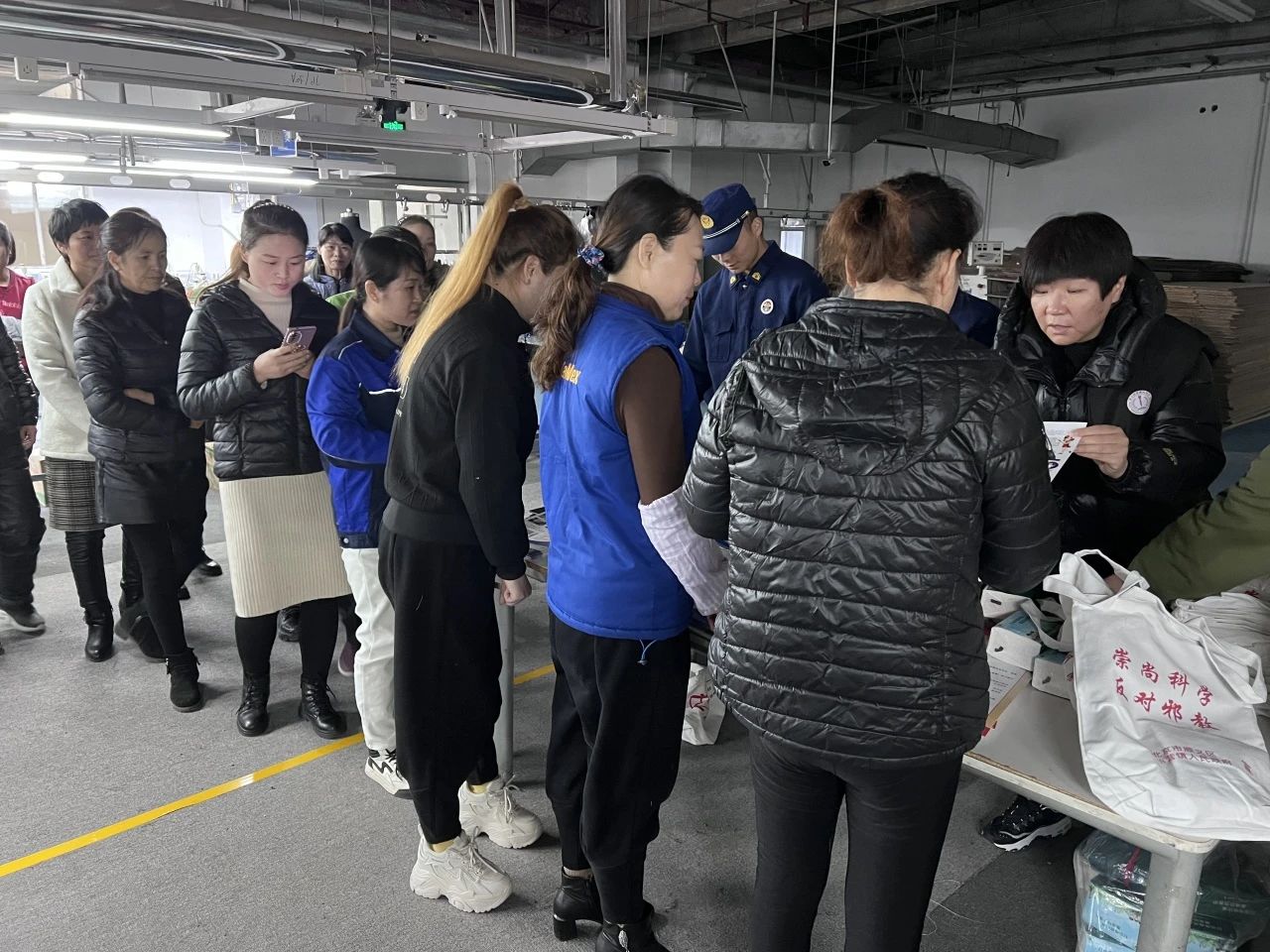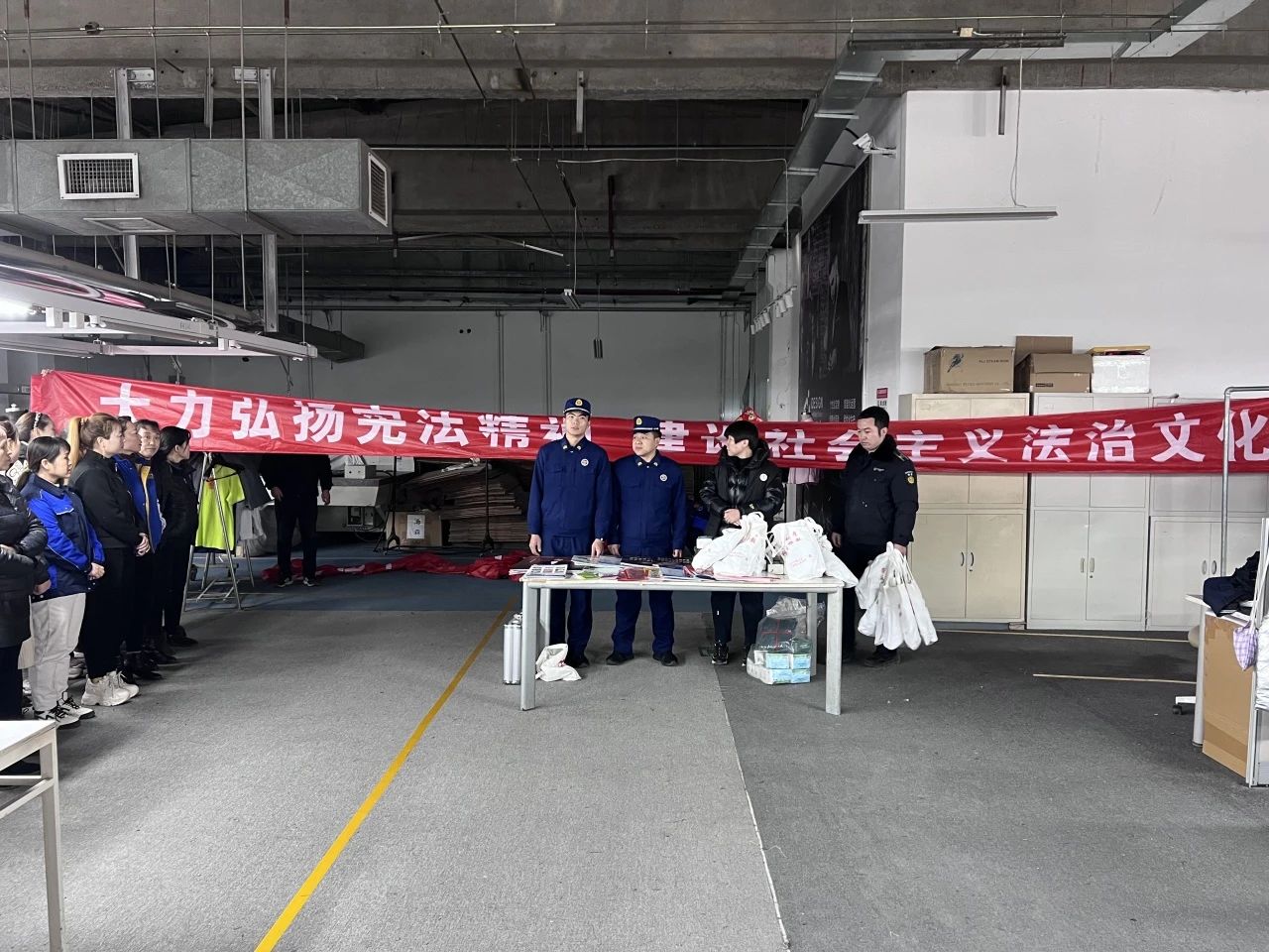 在爱丁山服装厂车间,工作人员围绕《宪法》《民法典》等相关内容进行解读,列举了多起职工身边发生的典型案例,以案说法,生动形象、通俗易懂。同时,还向现场企业员工讲解全面依法治国的重要意义,引导企业员工增强法治意识,号召他们从自身做起,自觉尊法学法守法用法。
