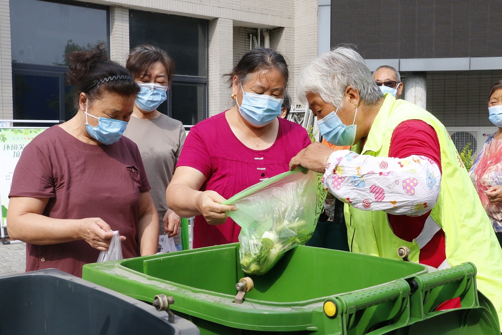 今天一大早金宝花园社区居民金超英提着一袋厨余垃圾来到社区居委会门前,参加社区组织的垃圾分类“厨余垃圾”换绿植活动,她的厨余垃圾里还夹杂着少许其他垃圾,垃圾分类指导员卫华茹和居委会工作人员现场对其进行指导,金超英和其他居民在他们的指导下正确投放厨余垃圾.较早之前,金超英的垃圾分类意识较为薄弱,家里的垃圾都是混放的,社区开始垃圾分类宣传后,她也积极加入到分类队伍。