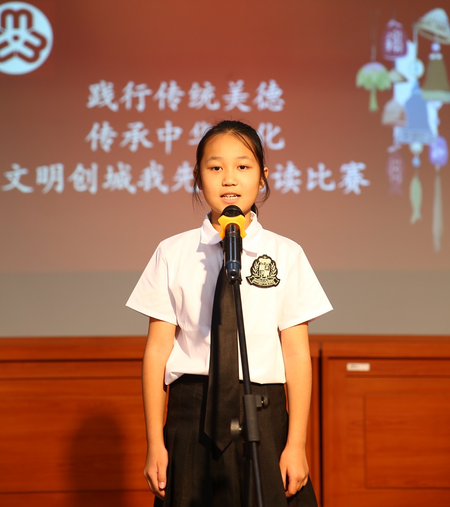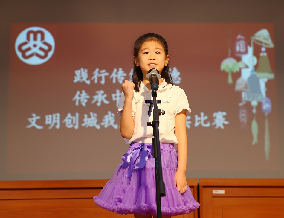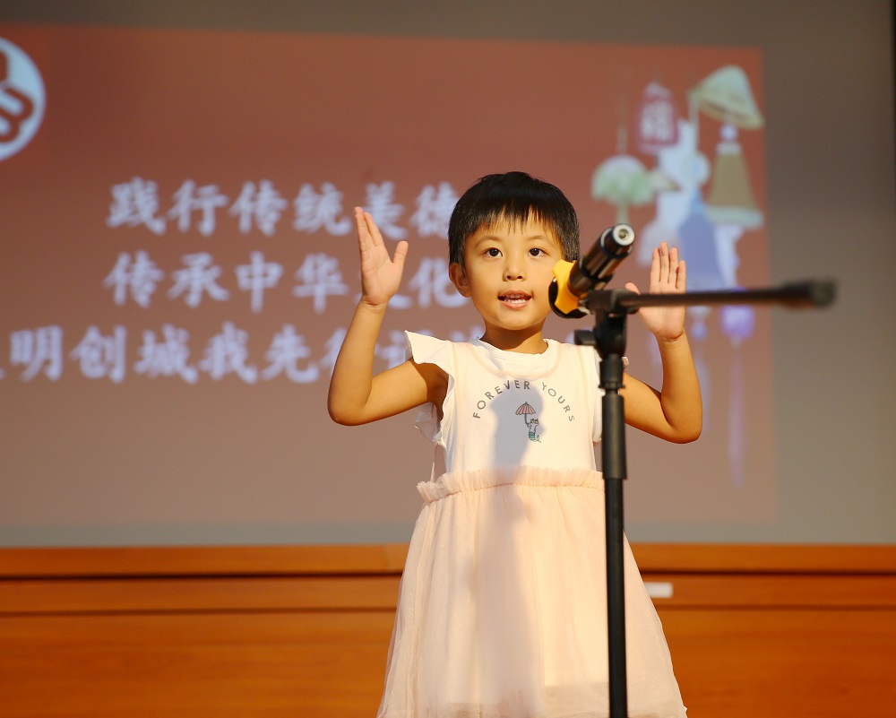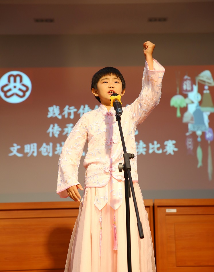 通过预赛、决赛,33名选手脱颖而出,进入本次决赛,其中年龄最小的只有4岁,最大的有51岁。参赛选手们都勇于展示自我,传递家庭传统美德,营造良好家风。伴随着背景音乐的层层律动,选手们用高亢的语调,饱满的情感带动着全场的观众,现场高潮迭起、掌声不断……小选手们有的讲述抗击疫情、守护生命的感人故事,有的赞美垃圾分类新时尚,有的朗诵精神文明新世界等等。宛如百花竞放,各展风采,令人心驰神往。活动一次次被推向高潮,美妙的音乐,激情的诵读给现场献上了一场震撼心灵的听觉盛宴。经过激励的角逐,最终李俊豪、高晨睿两个小朋友获得一等奖。
