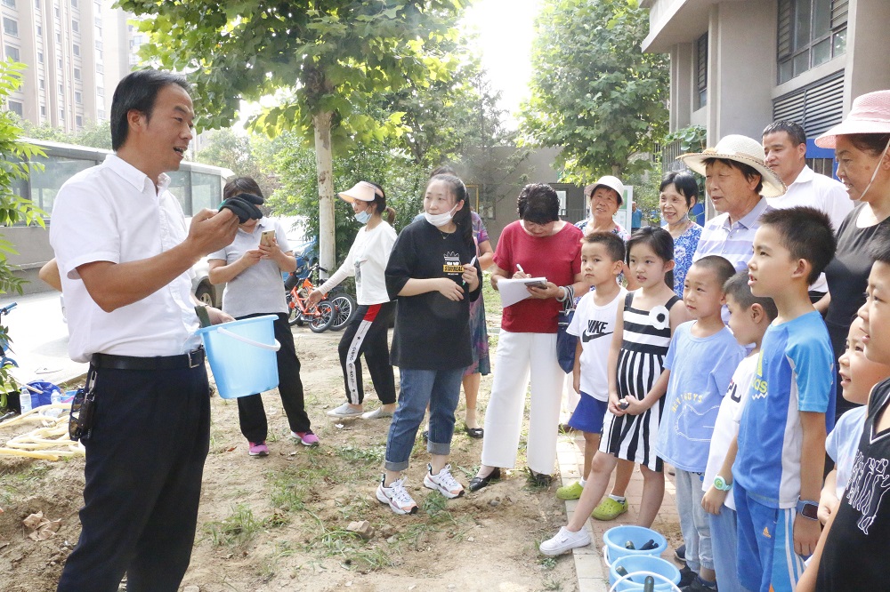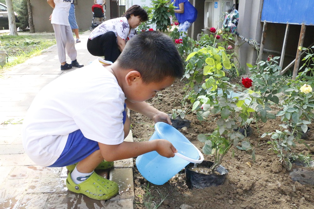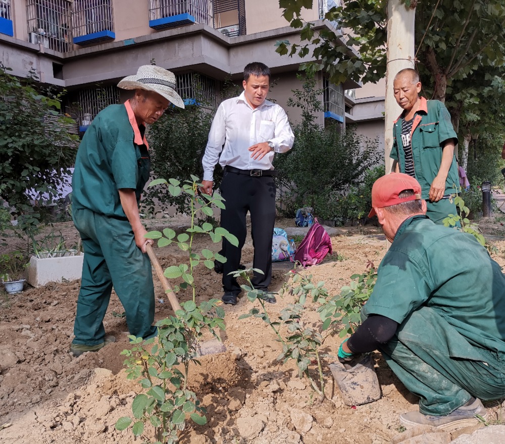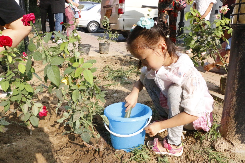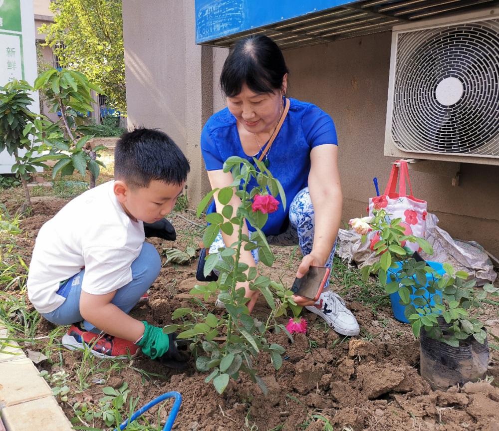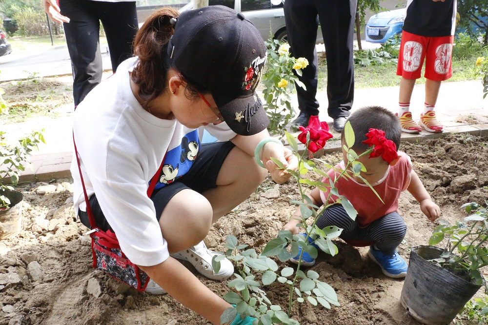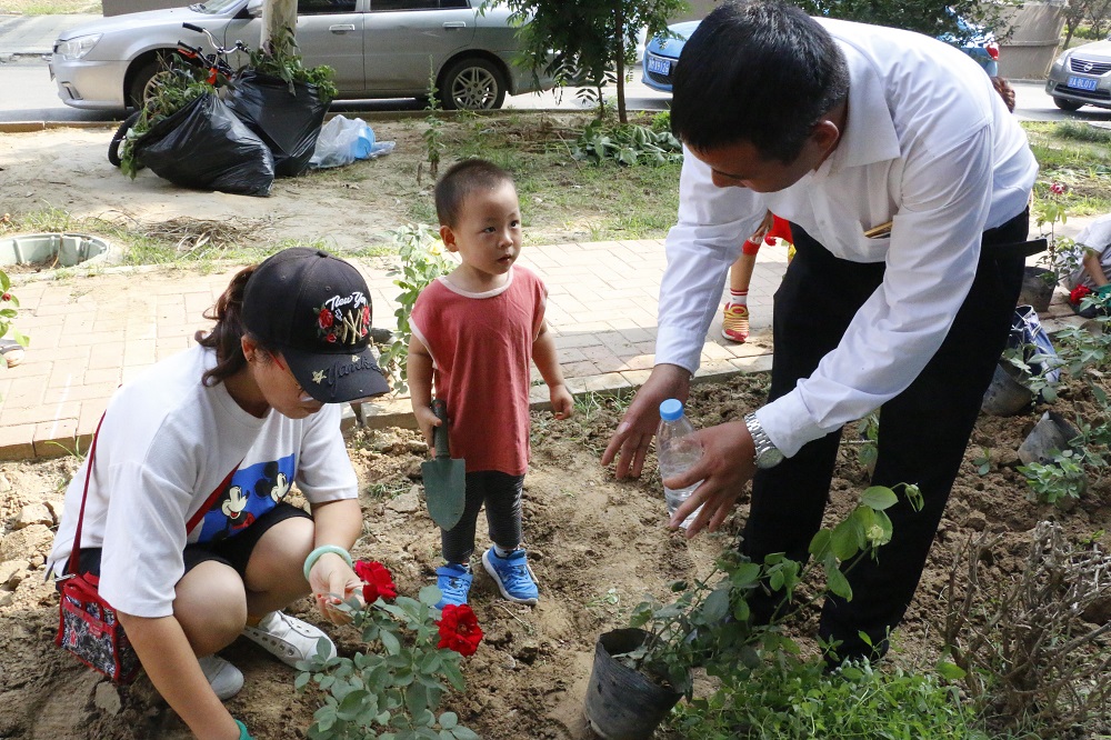 活动现场,物业环境主管王利强统筹绿化工人做好除草、翻地等前期准备工作和后续整理工作,并一边示范一边指导参与活动的亲子家庭和楼门长进行挖土、栽种、培土、浇水。同时,社区邀请专业的园艺老师为大家讲解了月季花的种植和养护方法。大家戴好手套、拿着工具跟随老师的讲解认真种植花卉,还有之前垦地种菜的居民也参与到绿地改造的行动中来。大家你栽花、我浇水,邻里之间相互帮助,一同携手将一大片菜地变成了花园。