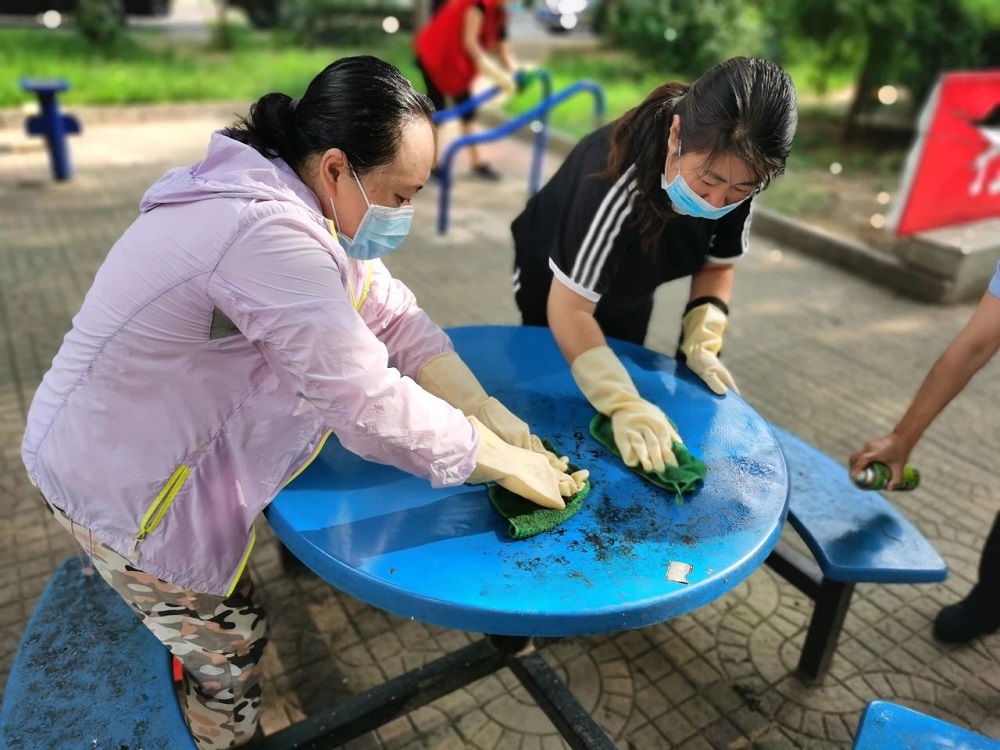 社区工作人员、党员、在职党员、物业人员、小巷管家、居民志愿者等400余人,不惧炎热,不怕脏不怕累,自行分组,清理休闲广场、草坪、花坛等区域内的纸屑、落叶、烟头等垃圾杂物;清除楼道、消防通道等公共区域里的废弃杂物;擦拭宣传栏、健身器、垃圾桶;整治各类小广告;清洁垃圾桶周边、绿化带等重点部位卫生,确保不留死角,让辖区整体环境得到提升。