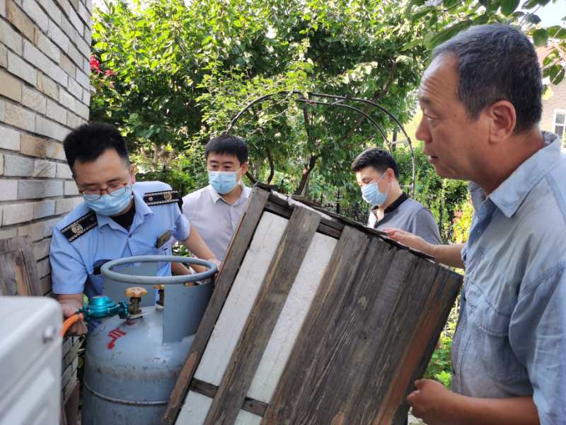 7月20日下午,双丰街道办事处主任周健,副调研员张云带领安全生产检查队,综合执法队,开展瓶装液化石油气隐患排查治理专项行动,全力以赴做好安全管理工作。