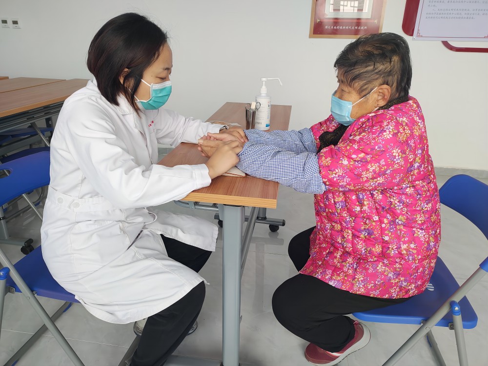 最后,志愿者引导居民们有序进行了健康义诊,问诊、查体、就诊,各个环节有条不紊。诊疗桌前,医务人员先为居民们诊脉并细心了解大家的健康情况,同时根据检查结果给大家细致讲解其身体状况,以及日常生活中应当注意的地方,并给予了参考性治疗方案,提醒大家身体不适时要及时就医,家中常备急救药物,做到早发现、早预防、早治疗。
