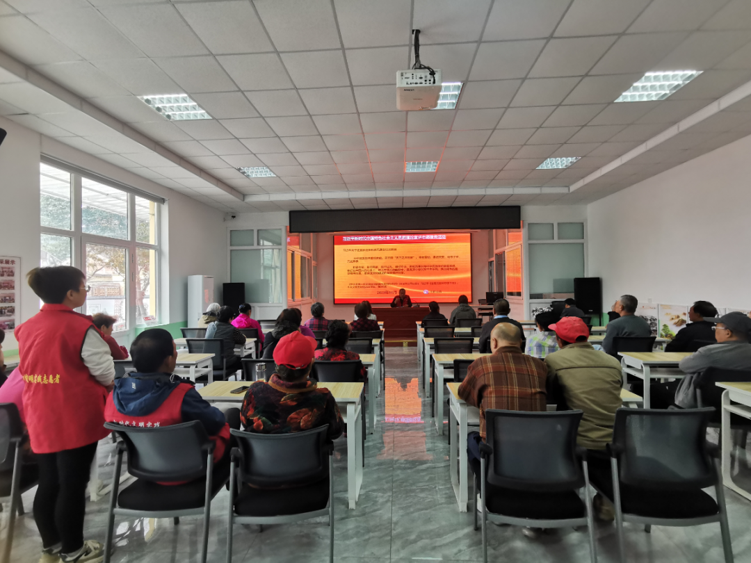 全镇新时代文明实践一所26站,大胆创新,在准确把握群众认知规律和接受习惯的基础上,持续开展接地气、有活力的理论宣讲。党校老师、志愿者、群众积极参与,形成“聚起来一团火,散开来满天星”的宣讲特色。通过搭讲台、强阵地,增强群众对党的创新理论成果、社会主义核心价值观、良好政风党风的思想认同和情感认同,不断凝聚党员、群众向善向好的思想共识。