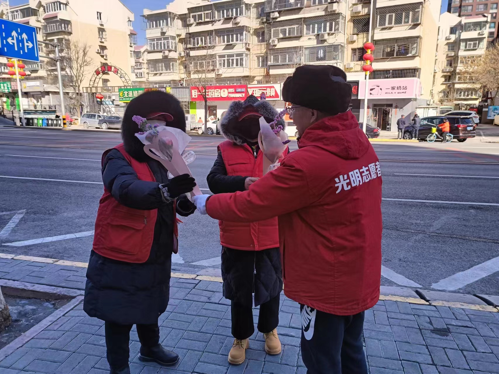 活动现场,志愿者为居民们介绍了志愿服务内容和参加志愿服务的意义,向大家讲述了优秀志愿者的感人事迹,并倡导大家积极加入志愿服务队伍。随后,社区工作人员为社区卡口站岗执勤的志愿者送上了鲜花,感谢他们在社区工作中的付出,并为女性志愿者送上了妇女节的节日祝福。