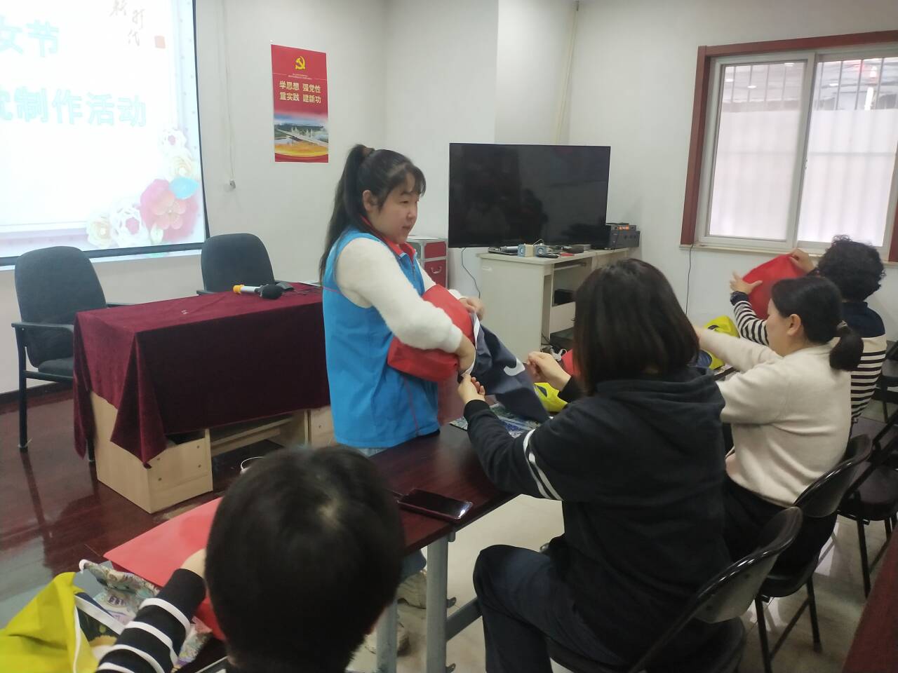 为丰富社区妇女同胞的休闲文化生活,营造和谐、温馨的节日氛围,3月8日,东兴三区新时代文明实践站开展了“环环相扣”庆三八手工靠枕制作活动。