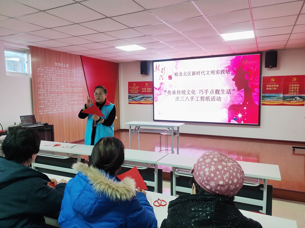 裕龙北区新时代文明实践站开展“传承传统文化 巧手点靓生活”庆三八手工剪纸活动