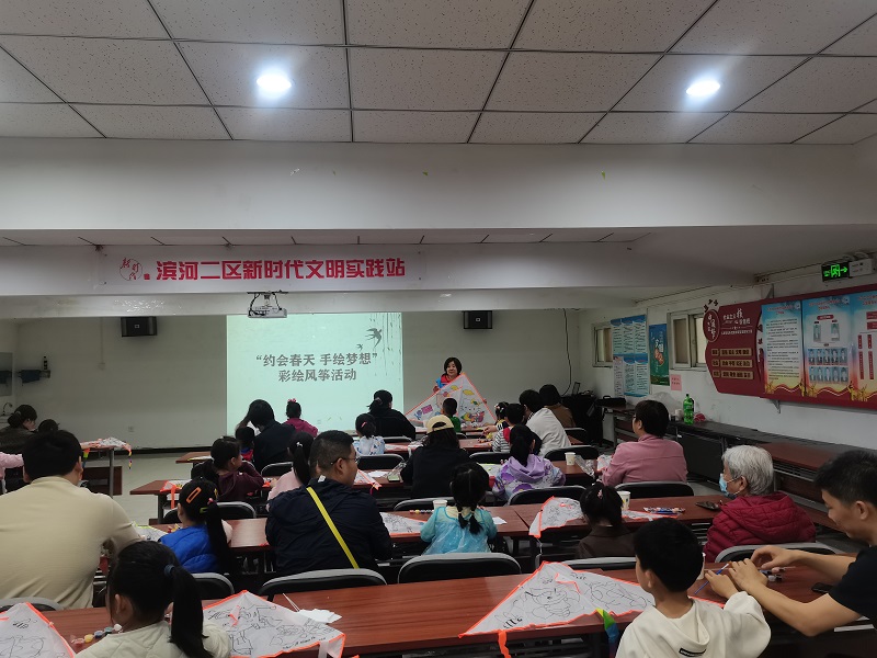 光明街道滨河二区新时代文明实践站开展“约会春天 手绘梦想”彩绘风筝活动