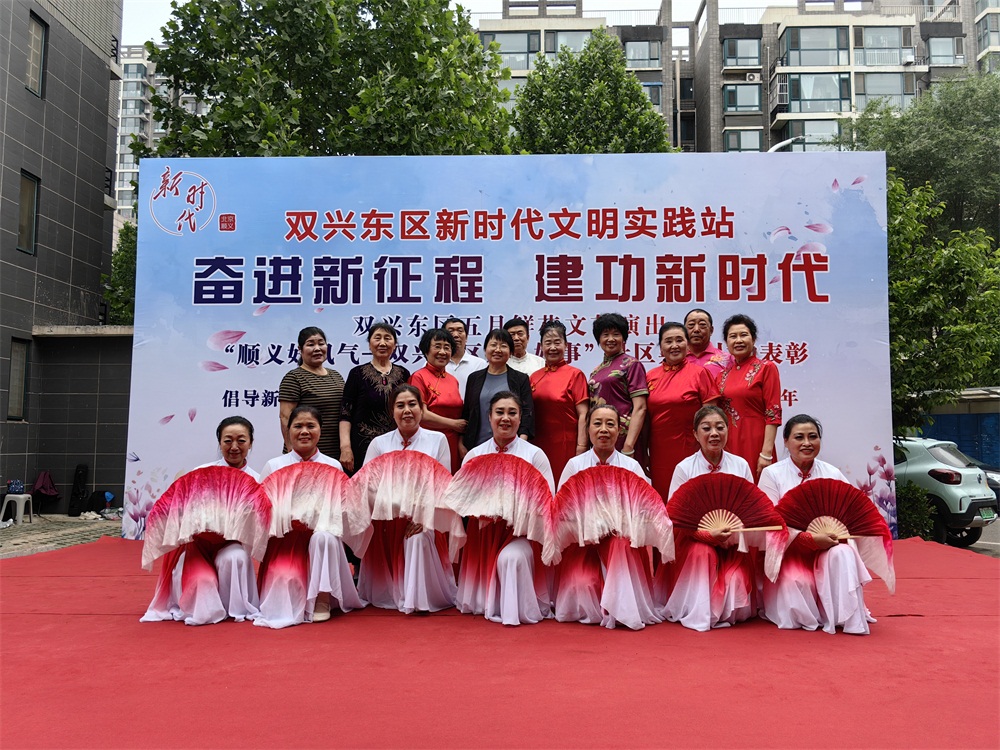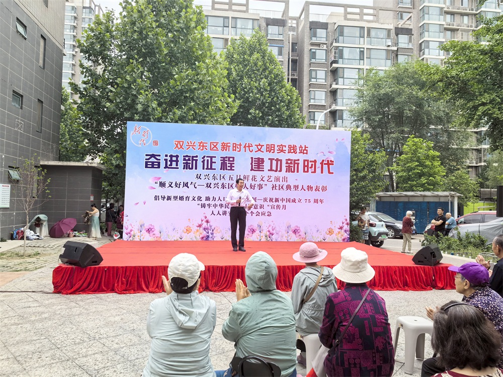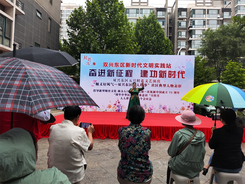为弘扬顺义好风气,丰富社区居民的精神文化生活,5月24日,双兴东区新时代文明实践站开展了“五月的鲜花”文艺演出活动,吸引了众多社区居民现场观看。