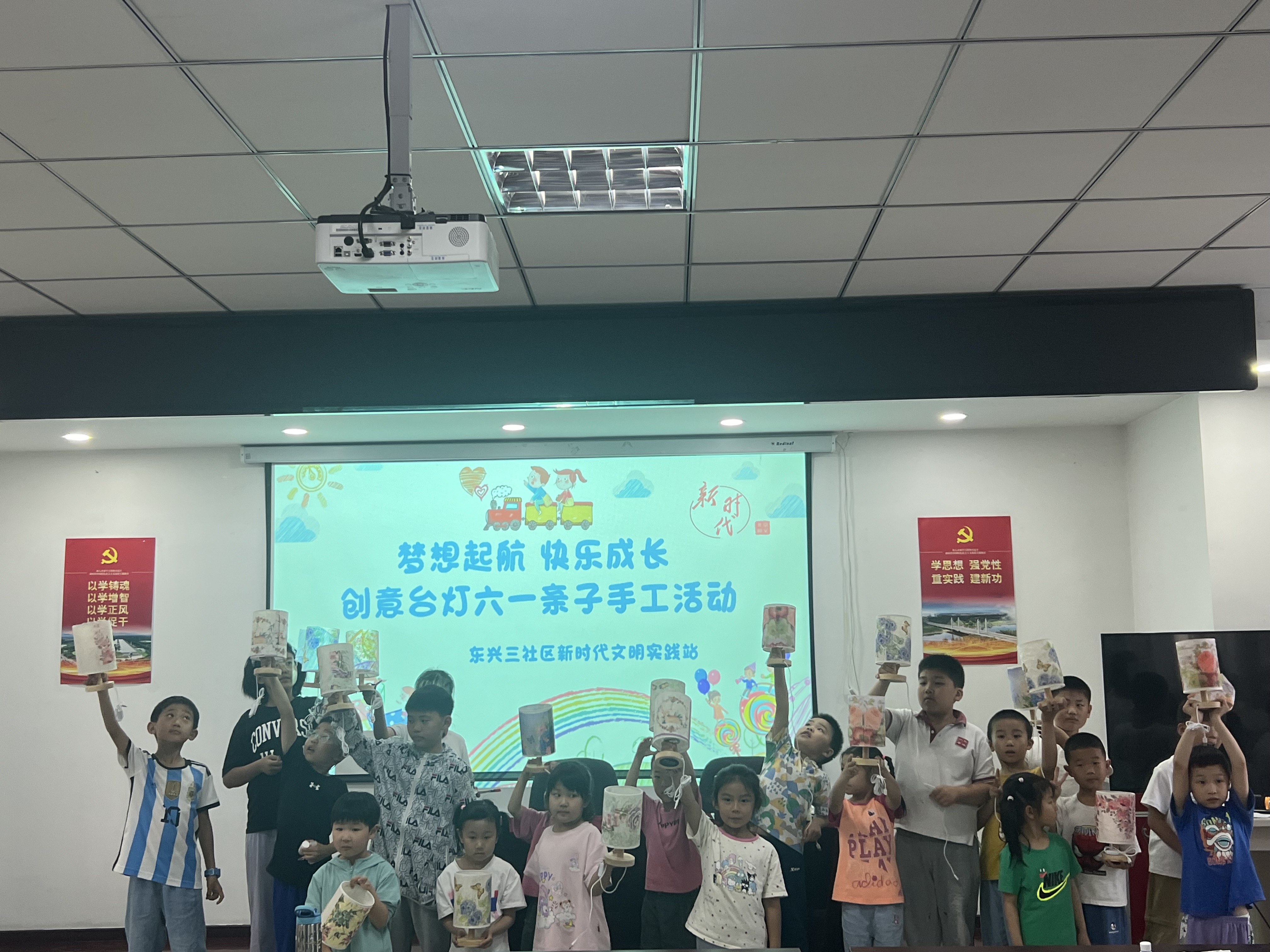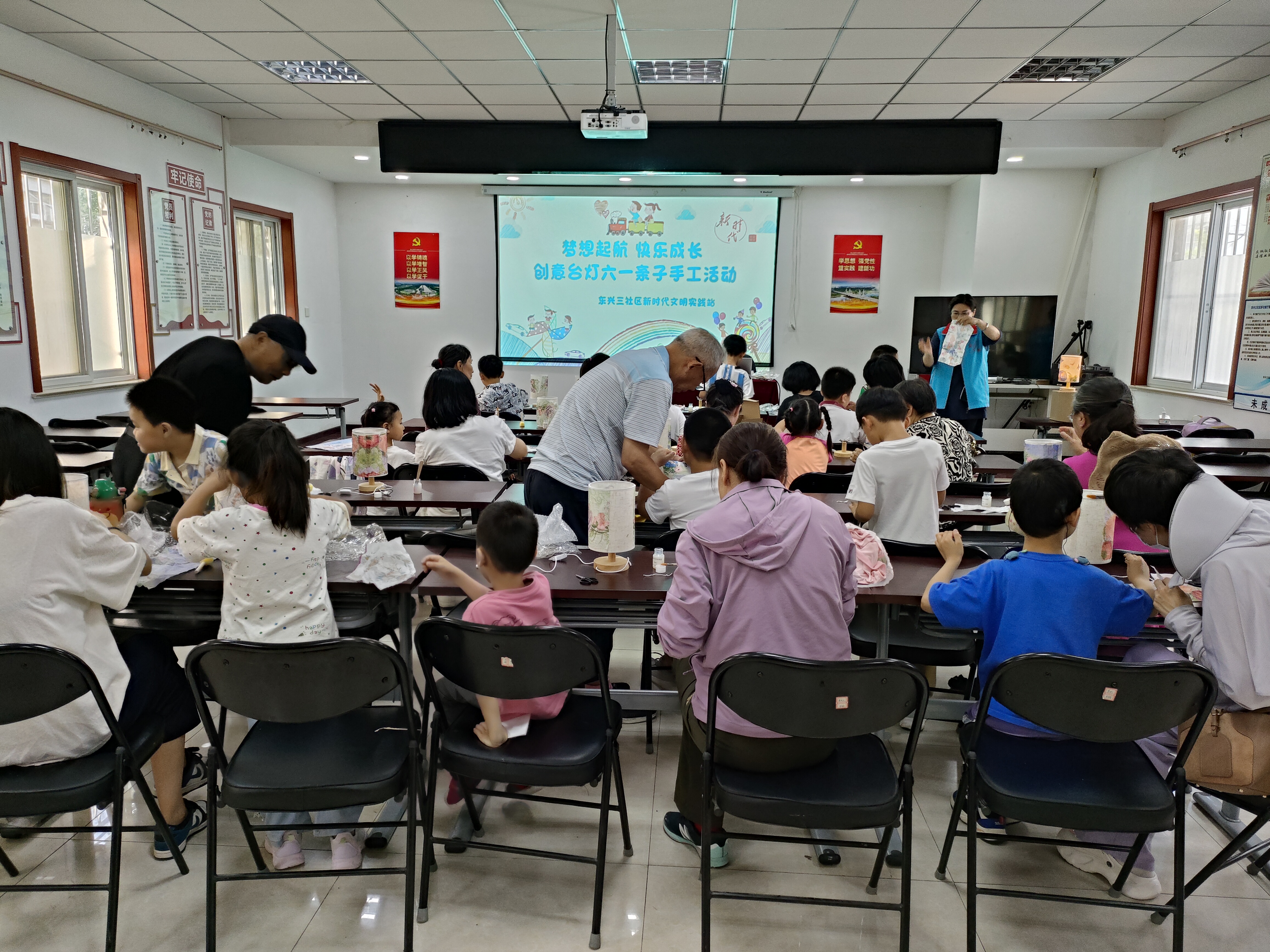 为庆祝“六一”儿童节,6月1日,东兴三区新时代文明实践站开展了“梦想起航,快乐成长” 创意台灯“六一”亲子手工活动,共20组社区家庭参加。