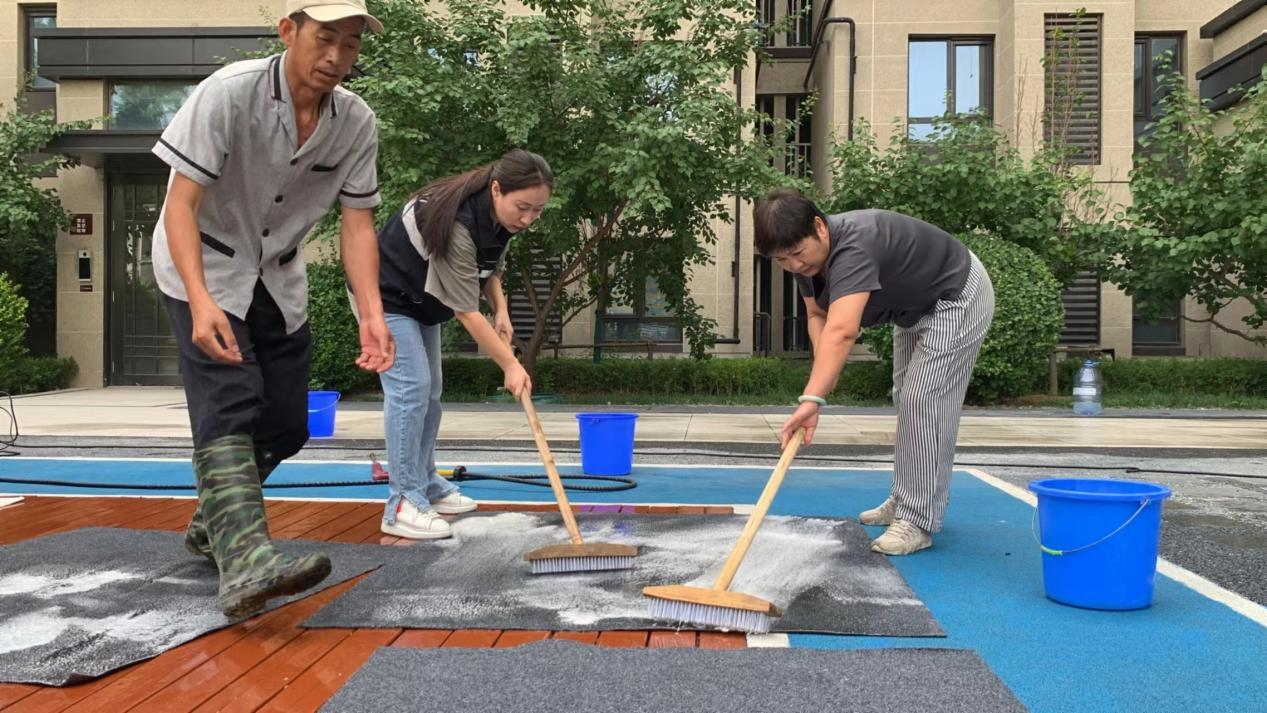 云赋家园社区实践站联合社区物业公司开展“便民服务聚民心,共树顺义好风气”清洗地垫志愿服务活动,党员以实际行动为社区群众提供便利服务。本次活动共计清洗地垫100余块,清洗服务让社区居民感受到了志愿者们为民服务的热情。