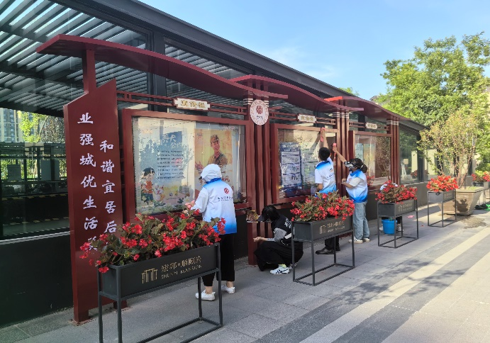 在顺颐名苑社区,工作人员和志愿者开展清洁整治工作,由党员干部带头,大家带着已准备好的夹子、扫把等工具,对辖区内及周边主干道等烟头垃圾较多的地方进行集中清理,同时整治自行车乱停放问题,规范自行车停放。为保持社区环境整洁,青年志愿者们将社区宣传栏、公益广告牌等进行清洁擦拭,让社区环境更加整洁。
