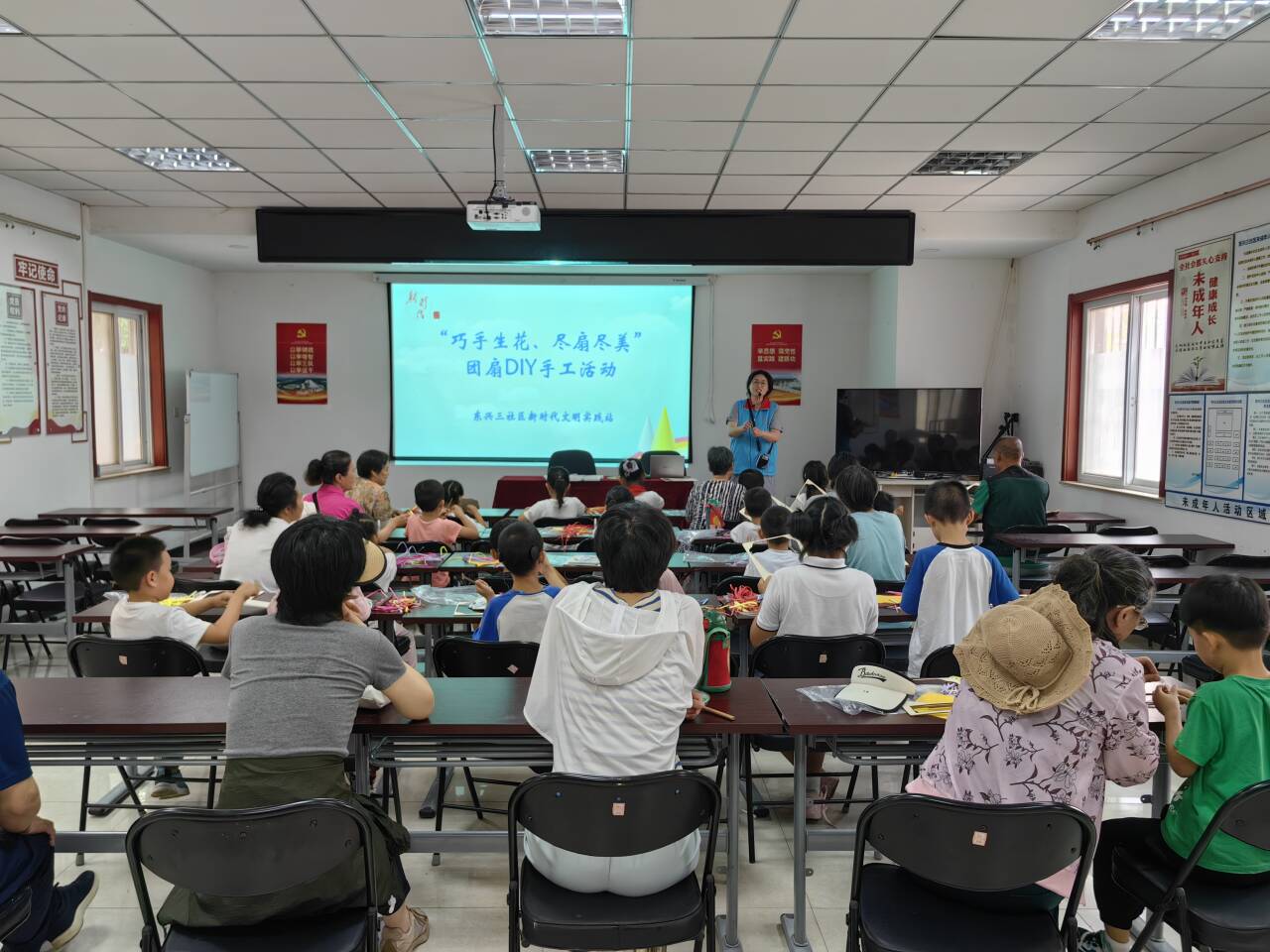 东兴三区新时代文明实践站开展“巧手生花 尽‘扇’尽美” 团扇手工制作活动