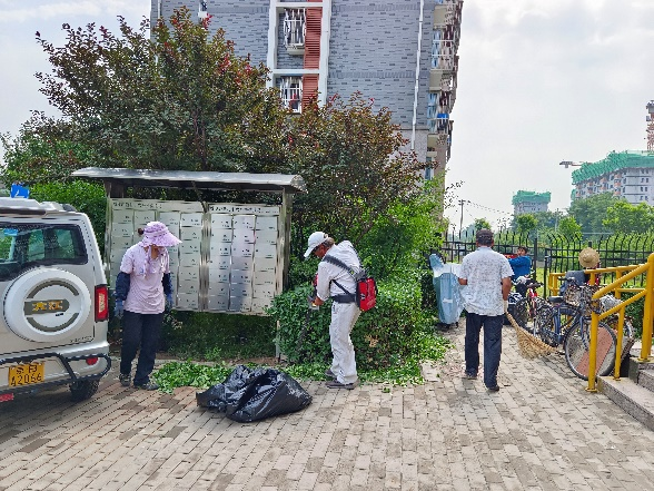 在后沙峪村,志愿者们充分发扬“不怕脏,不怕累”的精神,深入开展环境卫生大清理,他们拿起铁锹铲除社区内的垃圾和杂草,弯腰捡出藏在路边树下的杂物、清理废弃杂物、停放好共享单车。志愿者们以身体力行号召全体居民共同参与,提高辖区居民的环境卫生意识,共同为深化文明创建工作贡献力量。