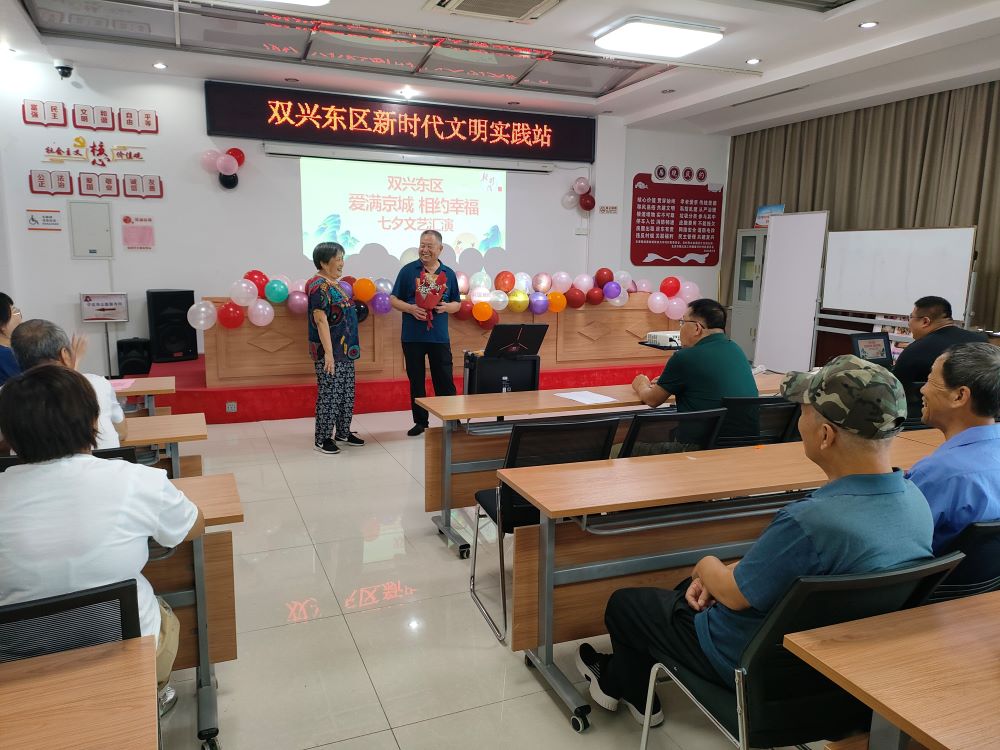 为营造浓厚的七夕传统节日氛围,丰富社区居民的精神文化生活,8月9日上午,双兴东区新时代文明实践站开展了“相聚七夕,共诵诗情”七夕文艺汇演活动,共30余位社区居民参加。