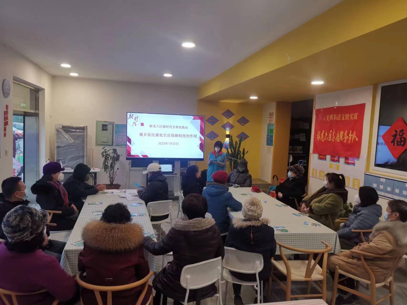 1月12日,光明街道裕龙六区新时代文明实践站开展“城乡居民最低保障制度”宣传活动,把党和政府的关怀和温暖送给辖区居民。