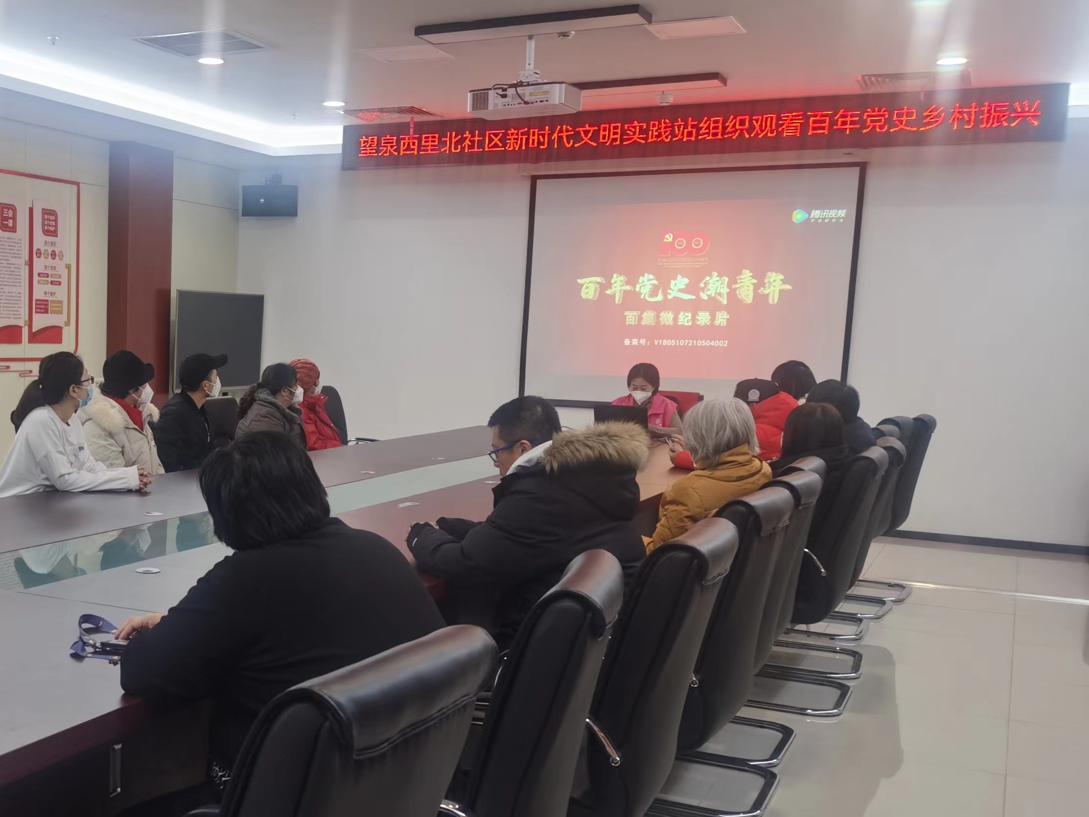 旺泉街道望泉西里北社区新时代文明实践站组织观看“百年党史乡村振兴”活动