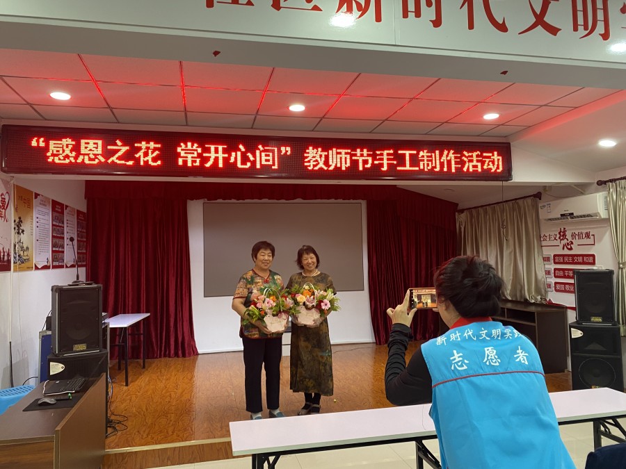 光明街道东兴二区新时代文明实践站开展“感恩之花 常开心间”教师节手工插花活动