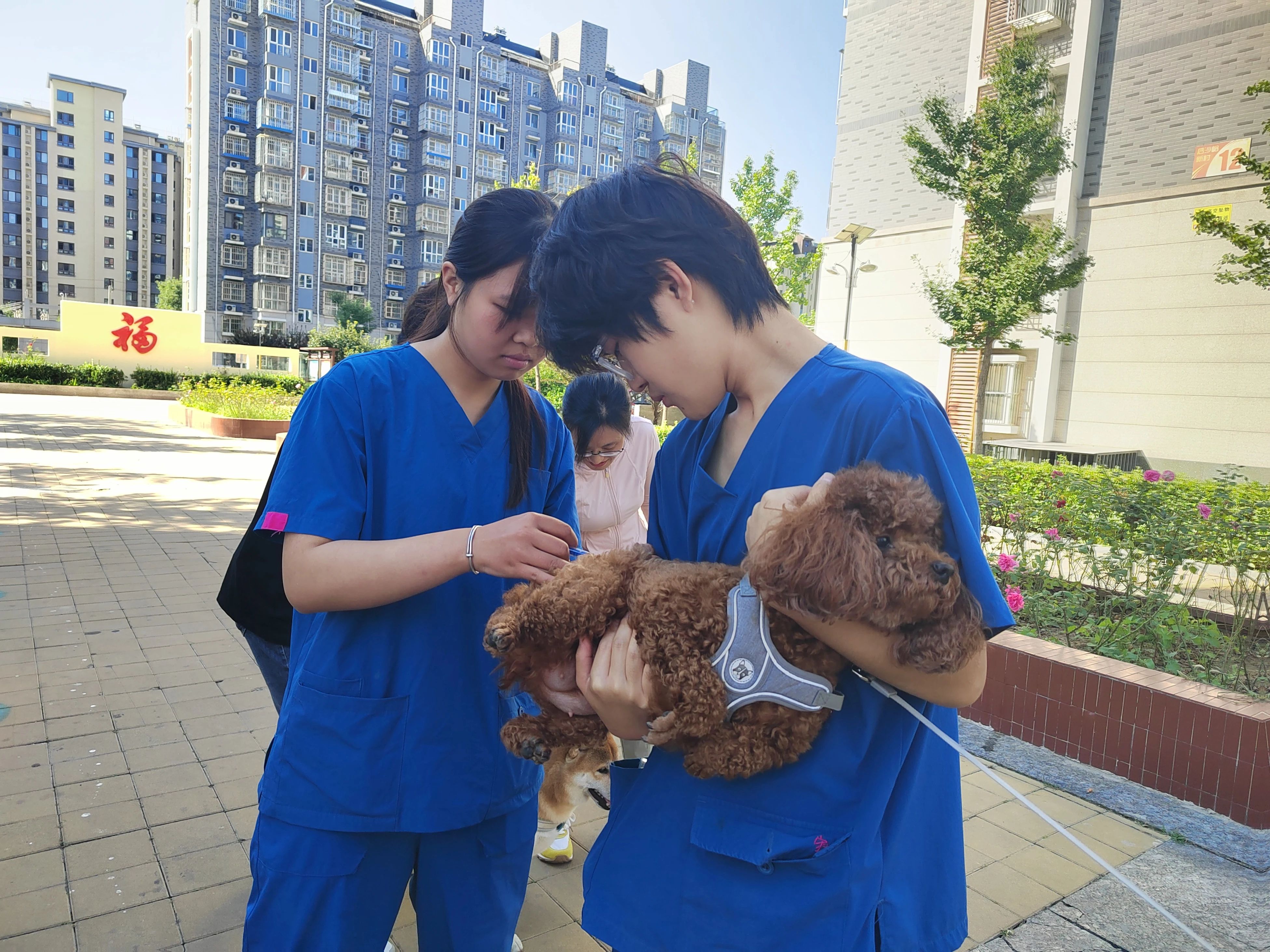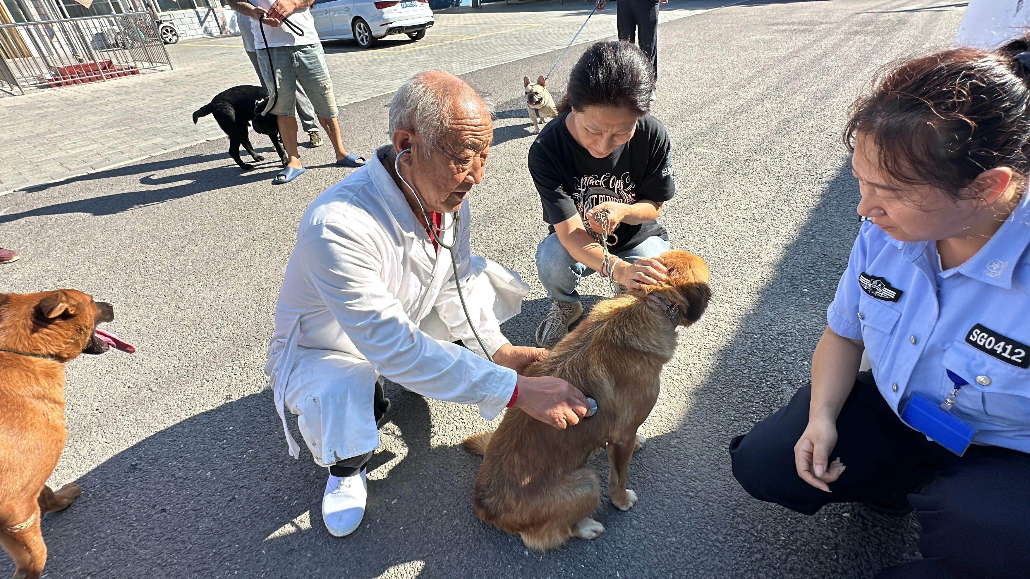 在后沙峪村,志愿者为村民们发放文明养犬宣传彩页和宣传纪念品,后沙峪派出所实管员为大家讲解村内养犬的相关要求及犬证的办理流程,提醒大家务必办理犬证。同时,活动还邀请到宠物医院的医生现场为居民们提供宠物饲养健康咨询,并为犬只免费注射狂犬疫苗。