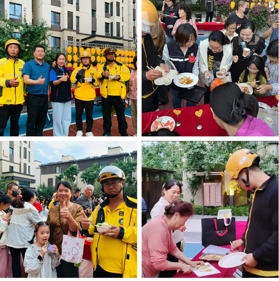 月满中秋,情满人间。中秋期间,云赋家园社区实践站联合物业公司举办了“人间至味是团圆,‘新’有所属共婵娟”中秋节百家宴活动,邀请到快递员、外卖员等新业态劳动者一起加入社区大家庭,让“小哥”们在异乡感受到家人般的关怀和温暖。
