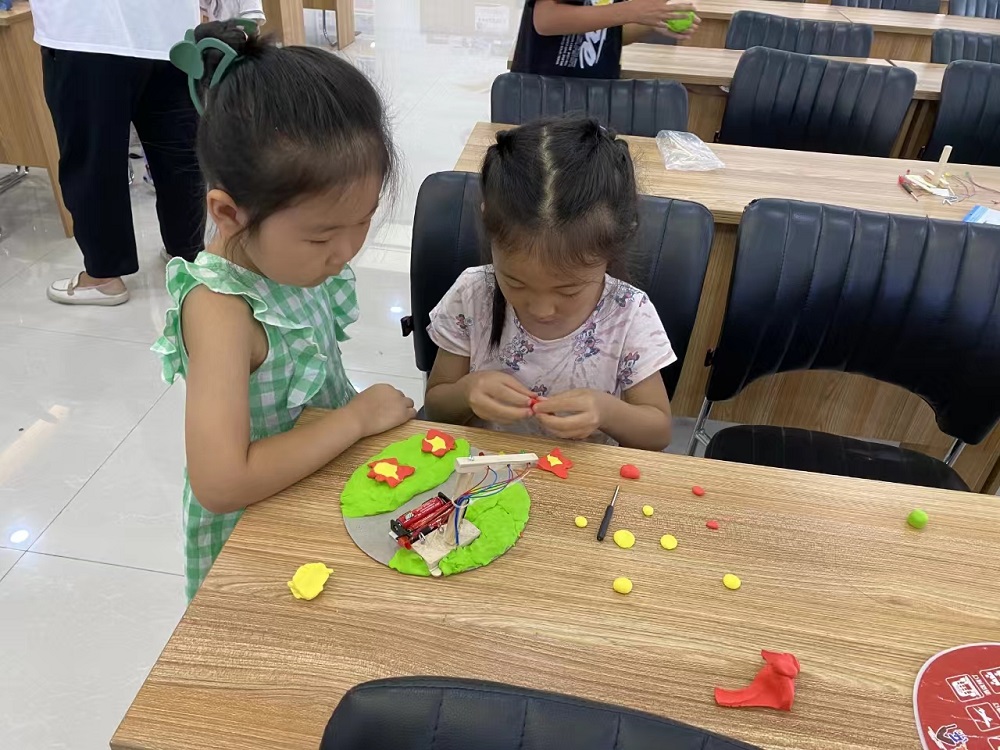 随后,老师给孩子们分发“交通安全红绿灯”的制作工具和材料包,并详细讲解“红绿灯”的安装步骤和方法。孩子们都跃跃欲试,和家长一起将零部件进行快速组合、安装,然后用双面胶固定底座,并安装上五号电池,最后合上开关,一个个鲜明、靓丽的“红绿灯”就制作好了。