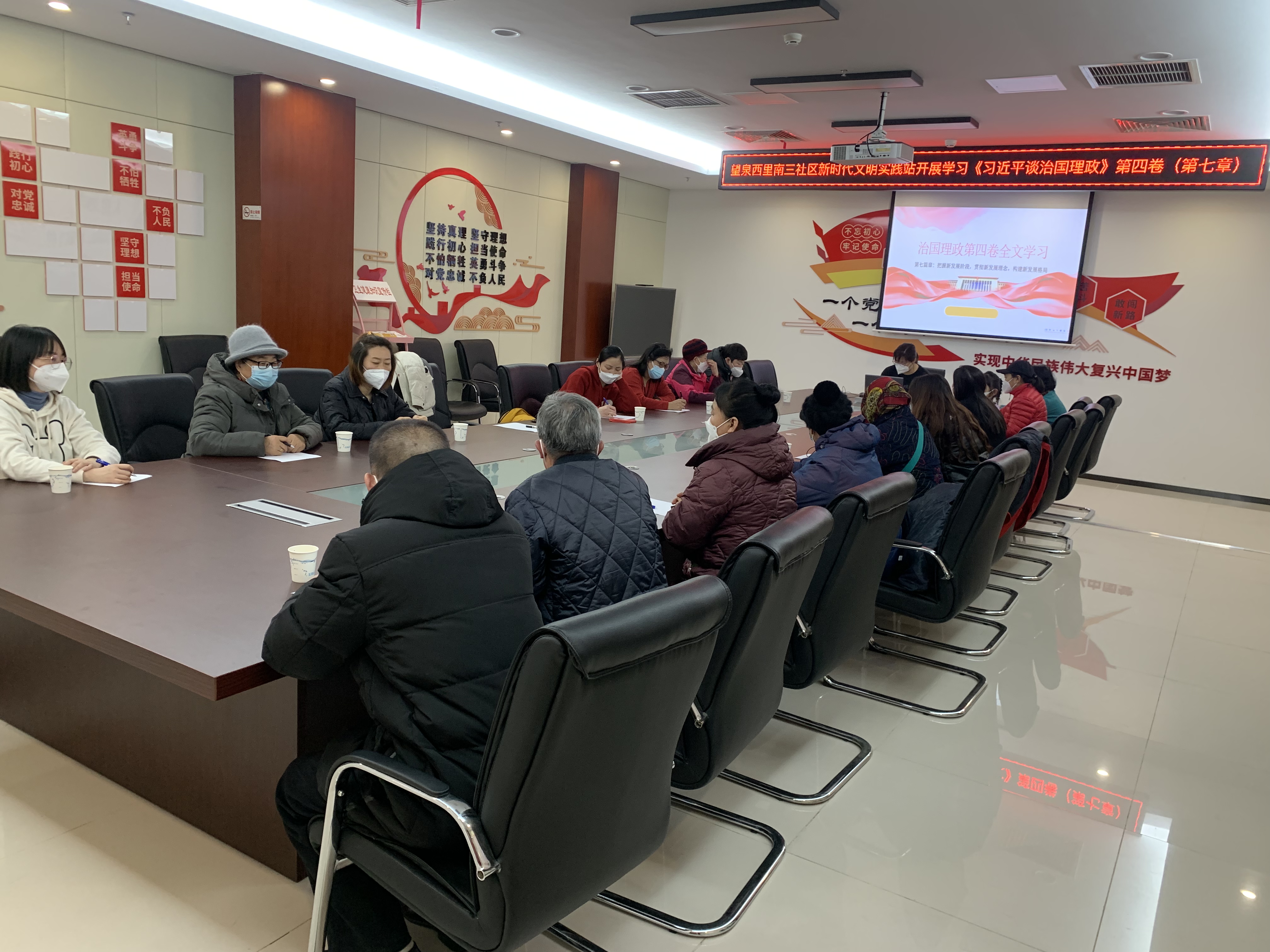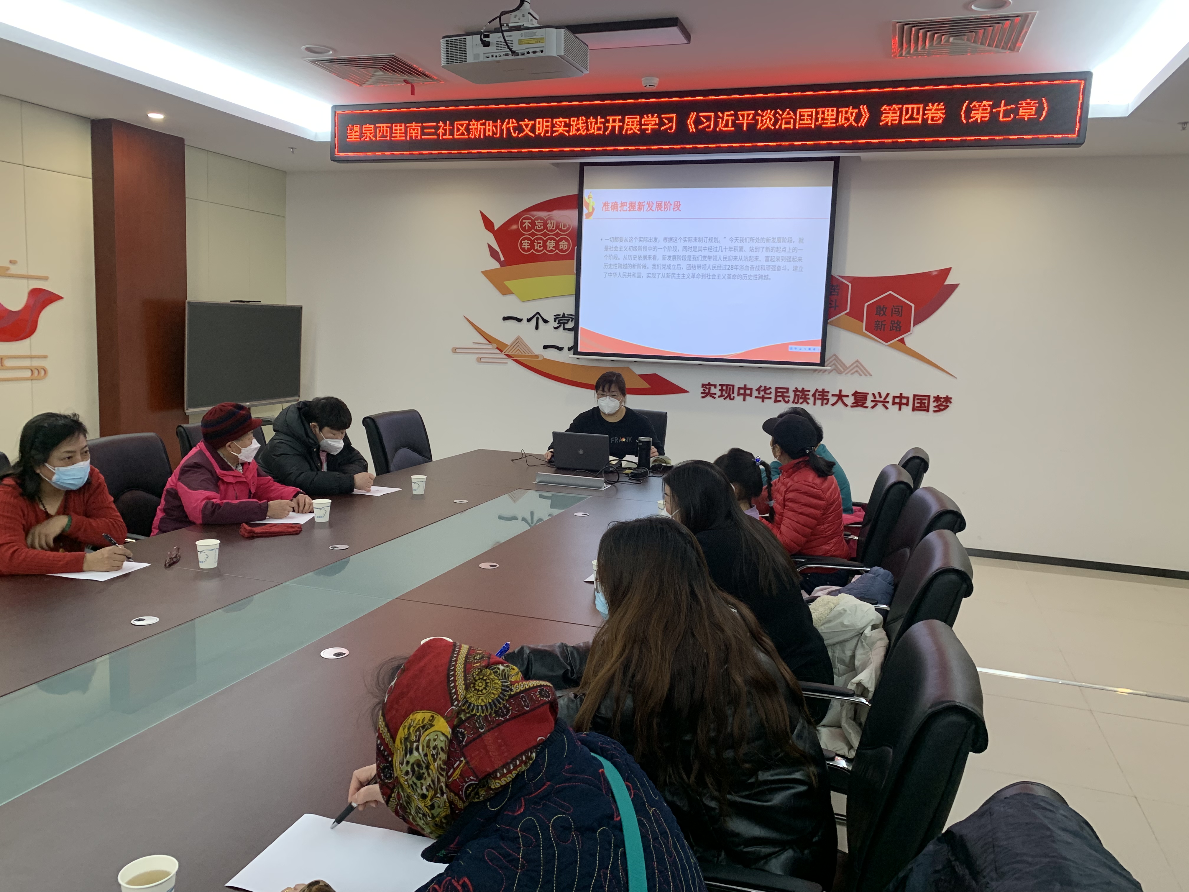 旺泉街道望泉西里南三社区新时代文明实践站开展学习《习近平谈治国理政》第四卷(第七章)活动