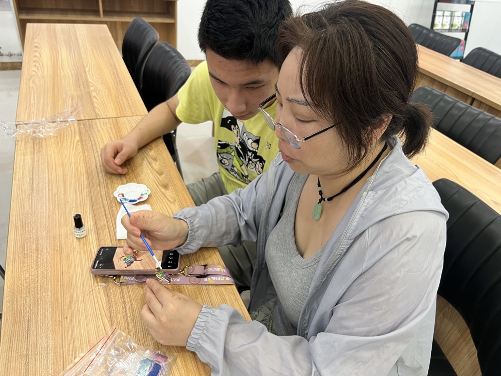 活动现场,景泰蓝制作老师为大家详细介绍景泰蓝的历史渊源、制作工艺和文化内涵,让大家对传统工艺有了更深的认识,并感悟传统非遗之美。随后,在老师的指导下,大家开始制作发簪,从设计图案到掐丝点蓝,彩砂与金属的碰撞间,颜色深浅自然过渡,图案瞬间充满活力。每一步制作中,大家相互沟通交流、分享技艺经验、给予彼此真诚的赞美及鼓励。经过一个多小时的学习制作,一个个典雅大方的发簪最终制作完成。大家纷纷与自己制作的精美发簪合影留念,活动现场充满了轻松愉悦的氛围。