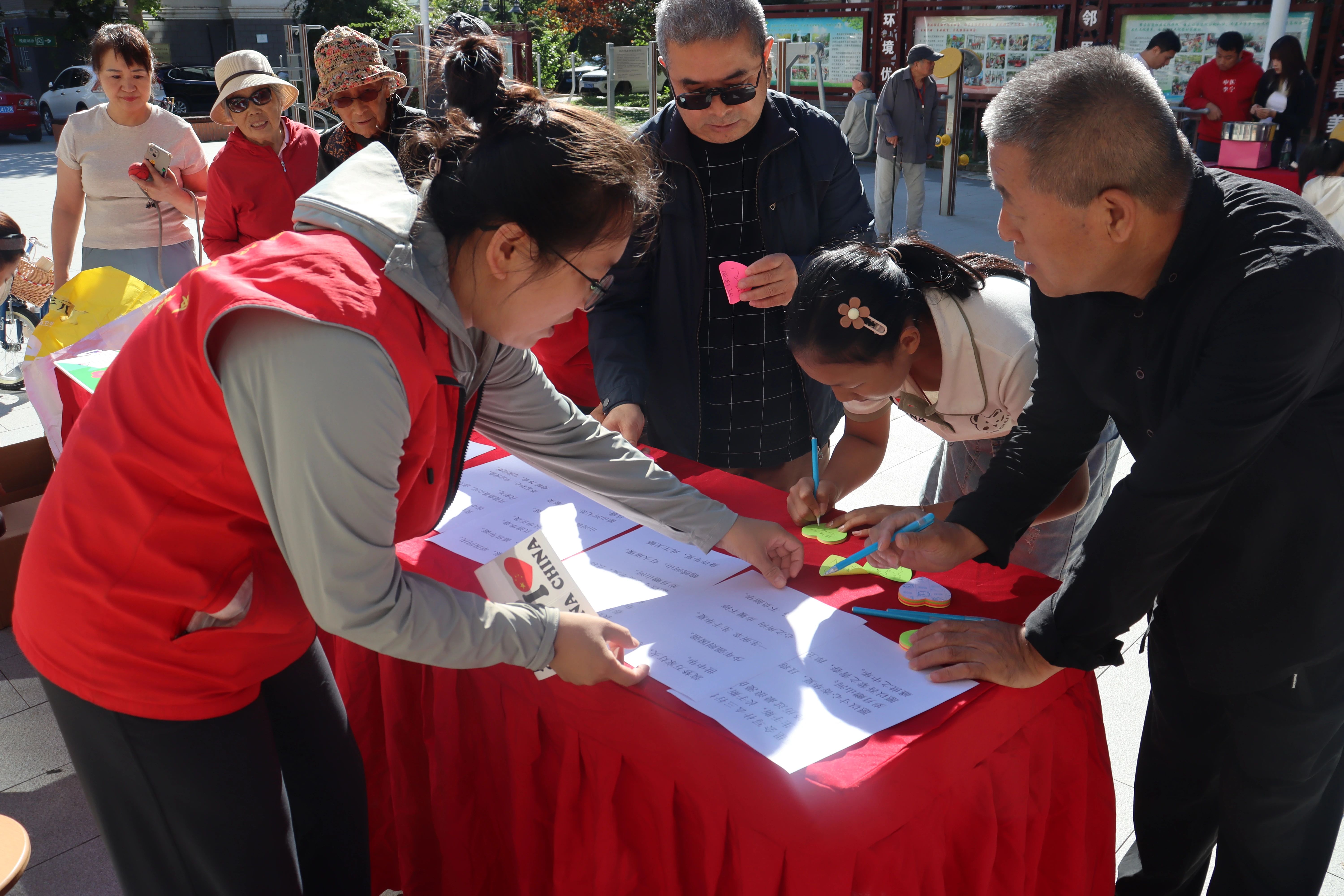 为了迎接即将到来的国庆节,进一步丰富社区居民的文化生活,营造向上向善的社区氛围,香花畦社区实践站组织开展了“党群同心迎国庆,共创邻里好风气”活动。在工作人员的帮助下,居民们挑选各自钟爱的爱国贴纸,并在便签纸上工整地写下对祖国的美好祝愿,然后将这份心意贴在祖国的壮美版图之上。每一位居民都深感荣幸,纷纷留下了与祖国的珍贵合影。