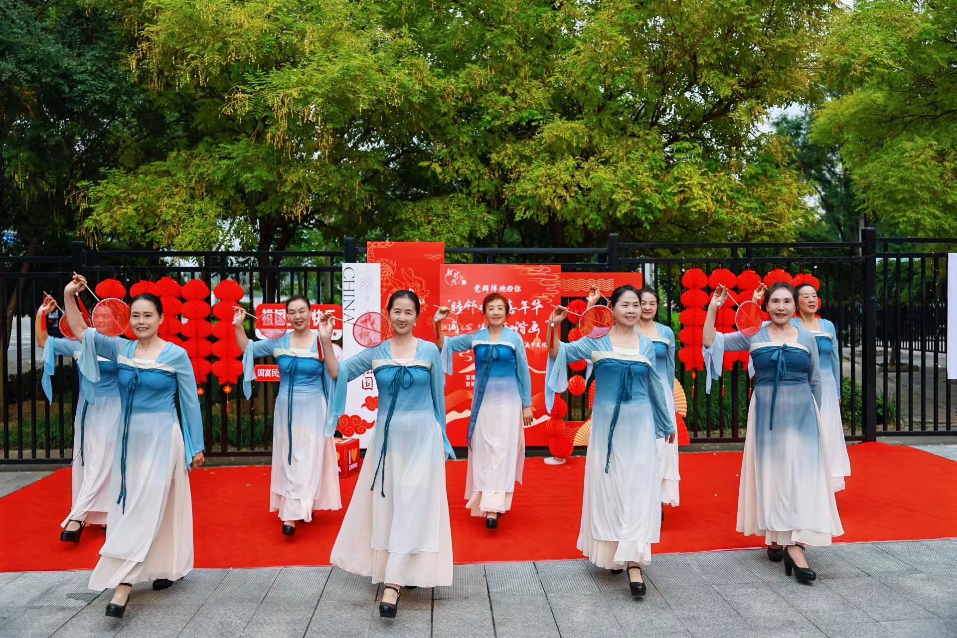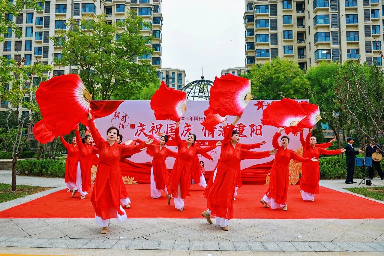 在国庆节来临之际,为进一步弘扬中华民族传统文化,展现社区魅力,蓝尚家园社区实践站举办了“ 庆祝国庆·情满重阳”文艺汇演暨便民服务活动。活动在社区舞蹈队带来舞蹈《江山》表演中拉开帷幕,瞬间点燃了居民们的热情。随后,相声、朗诵、马面裙模特秀、葫芦丝等多种文艺节目轮番上场,大家不时拿出手机记录精彩瞬间,并为演员们送上热烈的掌声。