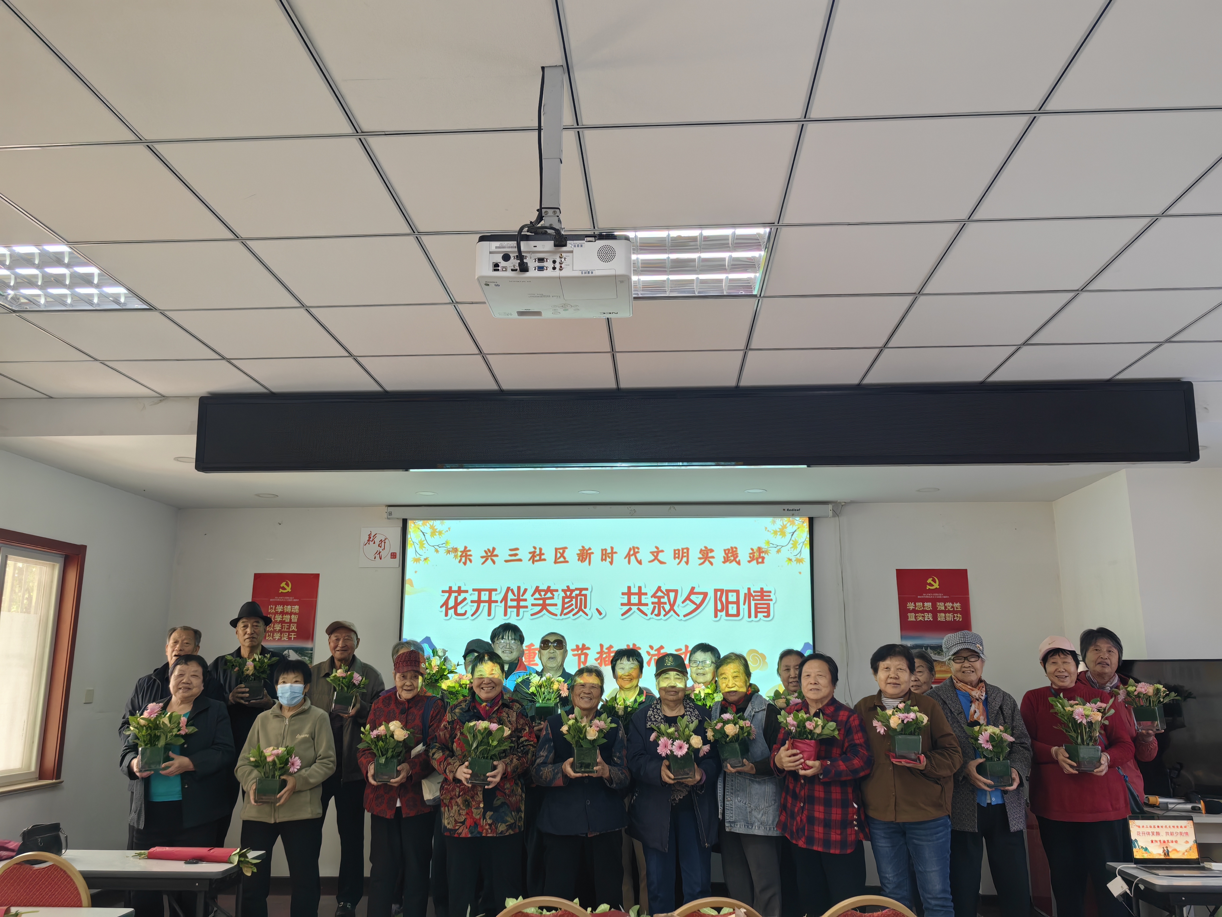 秋风送爽,果实飘香。重阳节来临之际,东兴三区新时代文明实践站开展了“花香伴笑颜,共叙夕阳情”重阳节插花活动,共20余位社区老人参加。