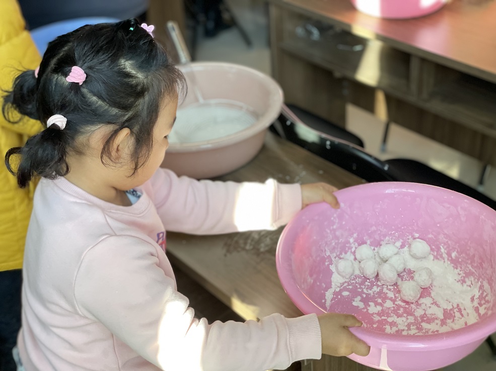 居民和小朋友们在志愿者的指导下,纷纷拿起工具,体验摇元宵的乐趣,“原来元宵是这样做的呀”。传统的手工摇元宵,寓意着新的一年阖家幸福、团团圆圆。看着自己的劳动成果,大家的脸上都露出了幸福的笑容。