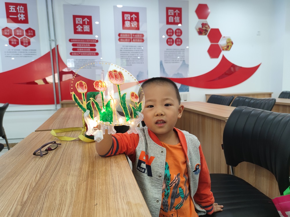 仁和镇鼎顺嘉园社区新时代文明实践站开展“执丝为笔 以釉为彩”掐丝珐琅灯牌制作活动
