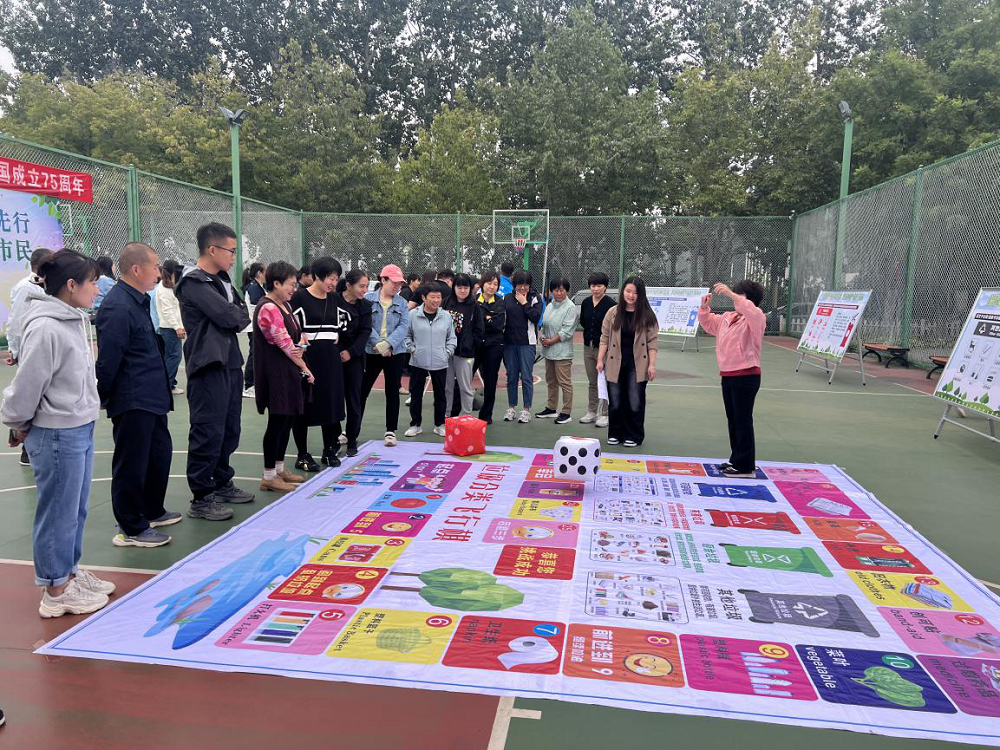 在“垃圾分类——飞行棋”环节,居民们通过投色子,投到几点就前进几步,最后回答正确飞行棋上对应的问题即可顺利通关。通过这些有趣的问答环节,让市民群众在玩乐中轻松学习生活垃圾文明投放、分类知识。