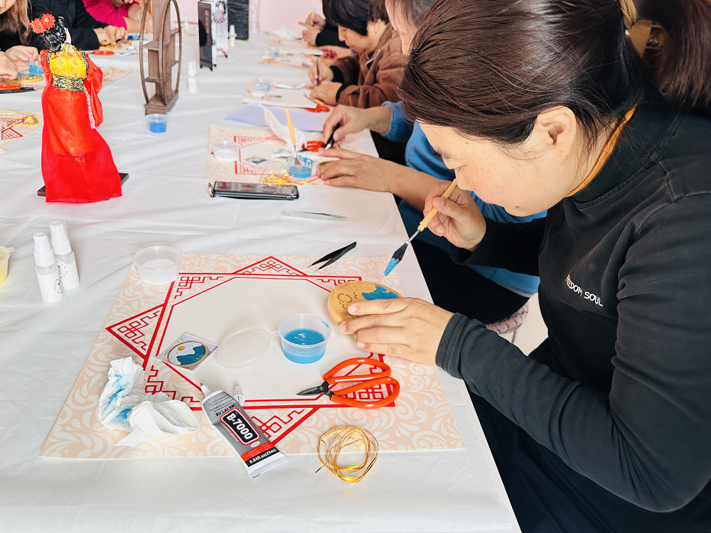 赵全营镇新时代文明实践所举办“魅力非遗 巧手生花” 掐丝珐琅杯垫制作活动