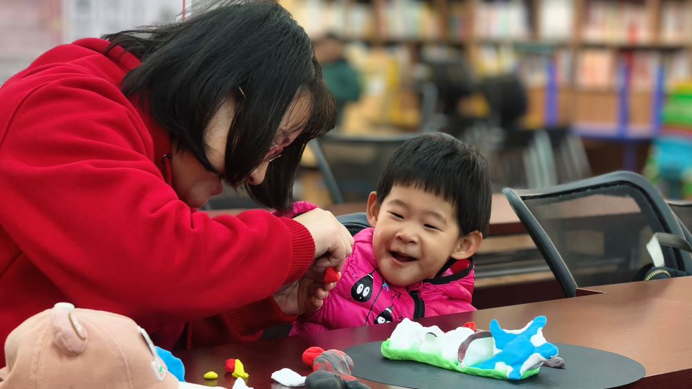 随后,在彩泥饺子立体画制作环节,孩子们在家长的陪伴下,纷纷拿起彩泥,一边挑选自己喜欢的颜色,一边开始动手创作。有的孩子模仿家长的样子,认真捏出一个个小巧精致的饺子,有的则发挥创意,用彩泥塑造出各种不同形状和颜色的饺子,让现场充满了童趣和想象力。
