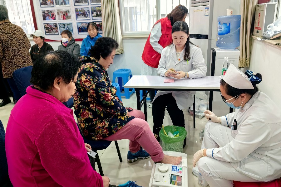 光明街道东兴二区新时代文明实践站开展“爱在立冬 关爱健康”关节炎义诊暖民心活动