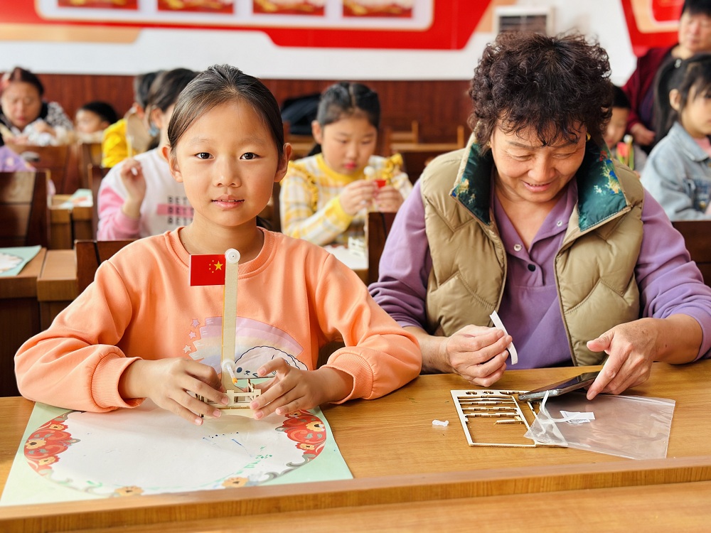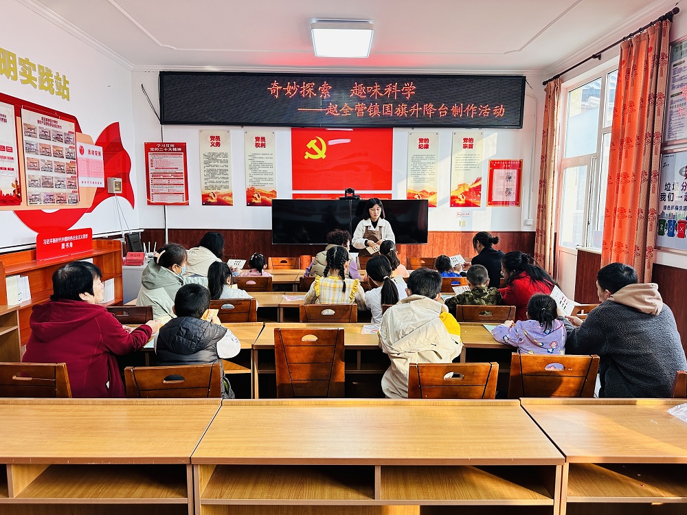赵全营镇新时代文明实践所开展“奇妙探索 趣味科学”国旗升降台模型制作活动